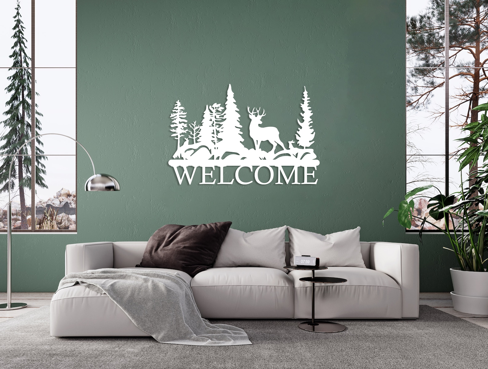 Metal Welcome Sign,Large Nature Decor, Tree with Deer Sign, Entrance door Sign,Unique Home Decor, Farmhouse Decor, Gate Wall Sign,Home Gift, Pine tree sign, Tree Sign, Metal Tree Decor, Metal Deer Sign,Housewarming Gift, Home Decor- Wall Art- Metal Wall Hangings – Custom Metal Works – Best Gift Ever – Unique Gift, Wall Hangings, Gift for Him, Personalized Sign, Gift for Her, Living Room Decor, Bedroom Decor, Metal Sign, Entrance Decor, Wild Sign,
