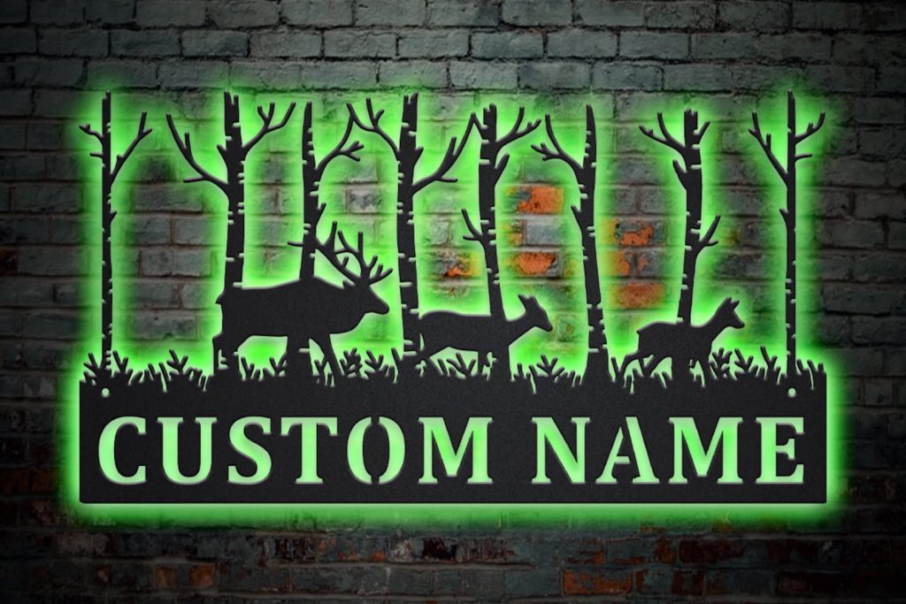 Revamp your hunting cabin with our Custom Deer Hunting Monogram Metal Sign that comes with LED lights. It9;s a perfect addition to your collection of hunting memorabilia. Made with high-quality metal, this sign features a stylish deer design that will surely elevate the aesthetics of your space.