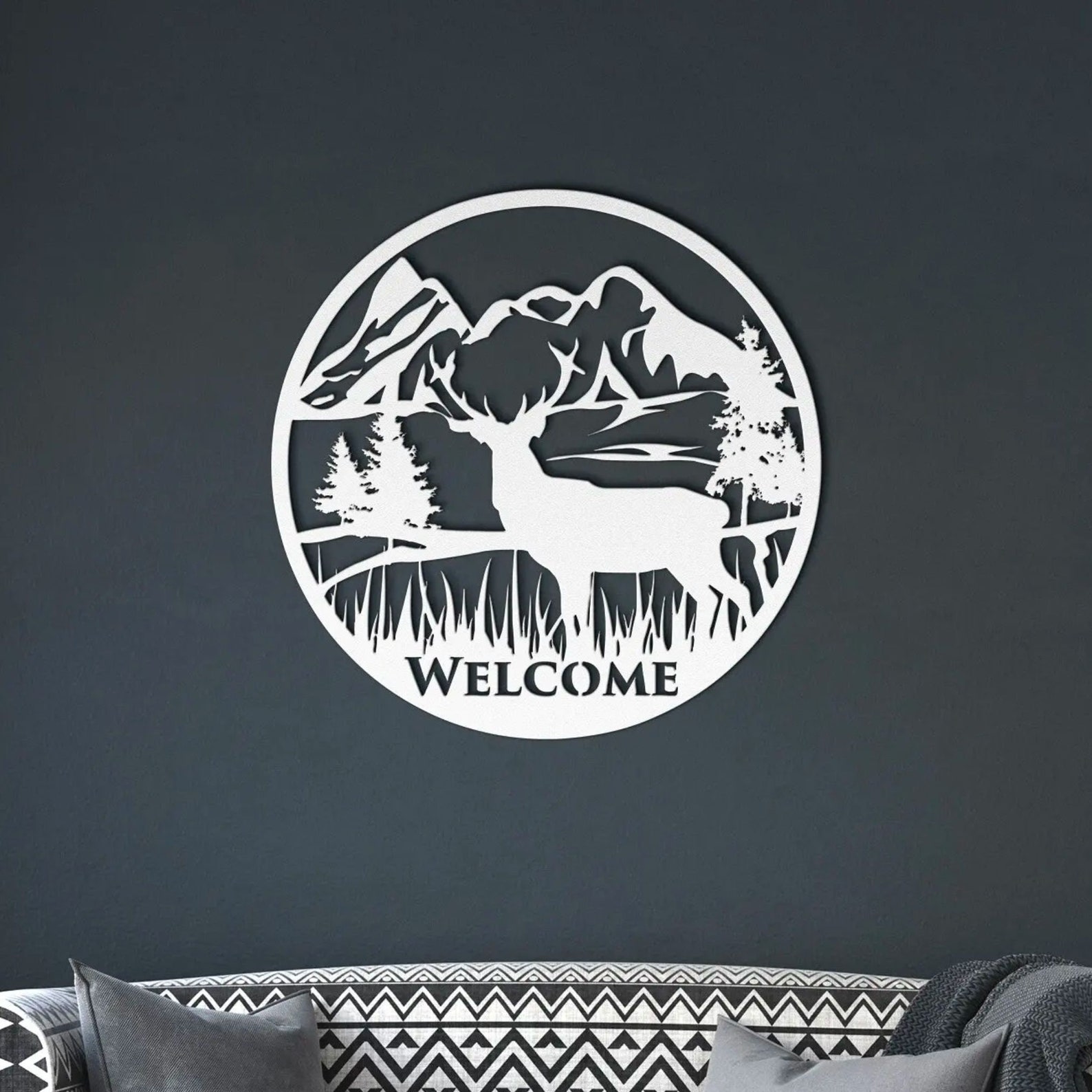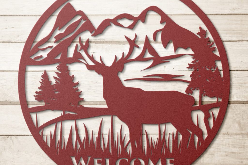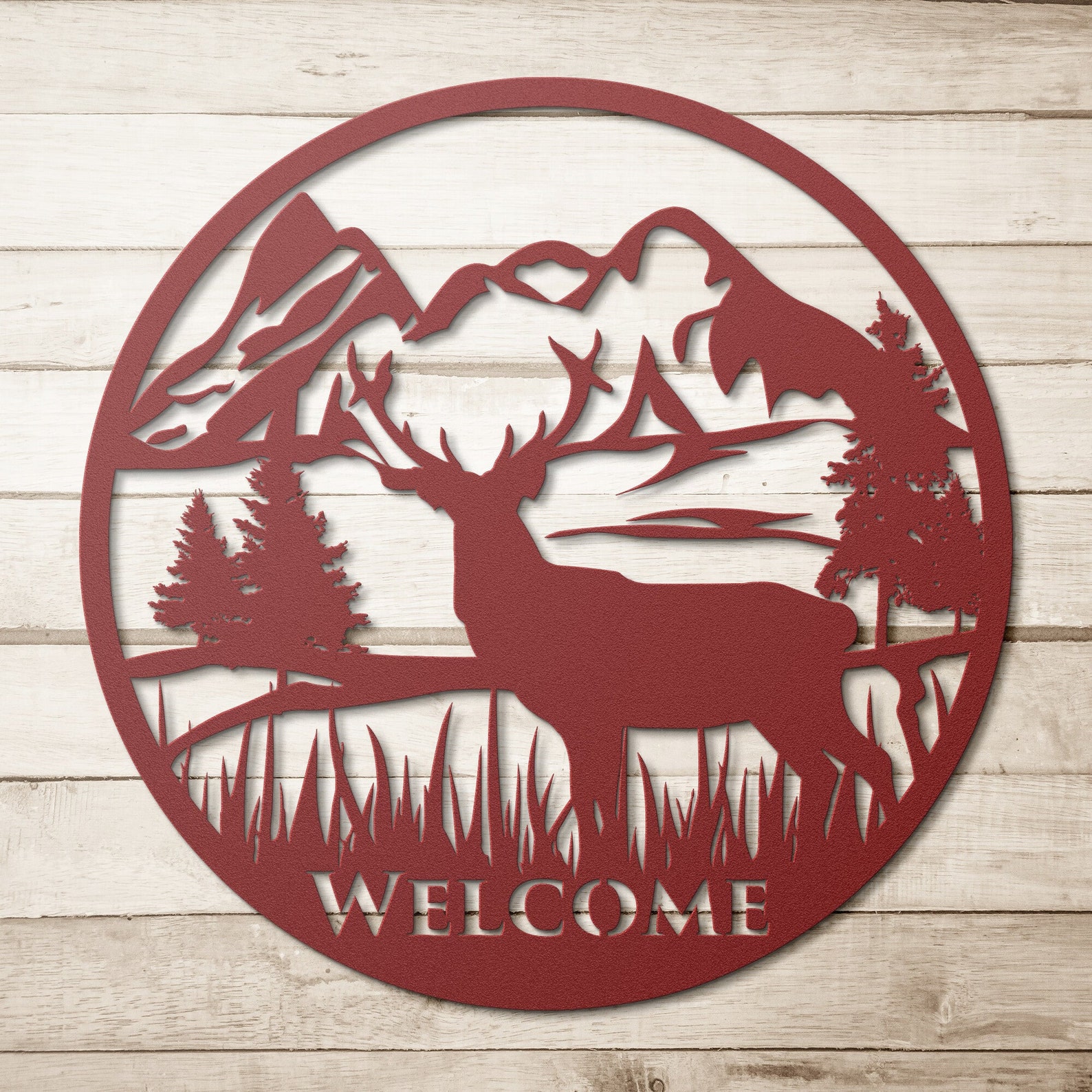 Welcome Deer Metal Sign, Custom Deer Sign, Mountain Deer Metal Sign, Housewarming or Wedding Gift, Hunting Cabin Sign