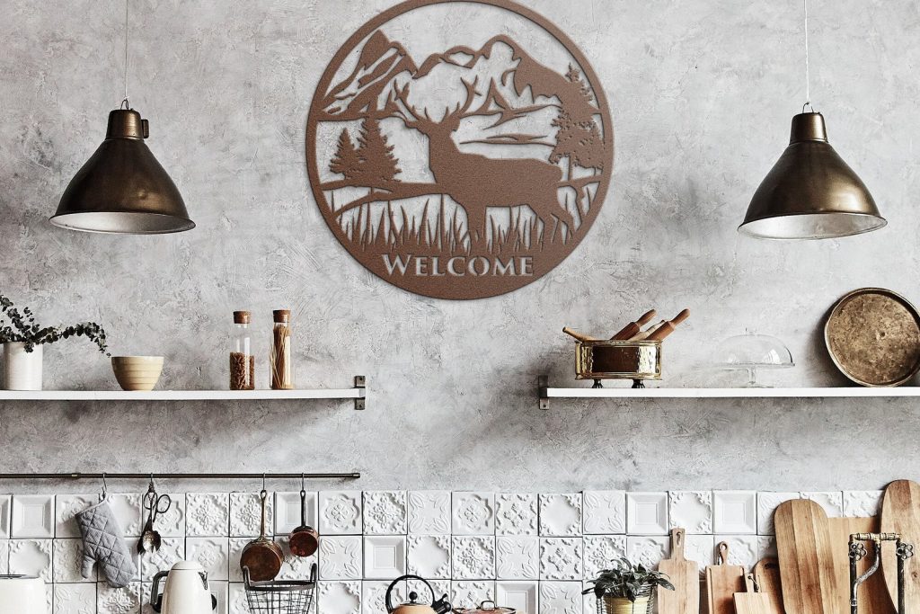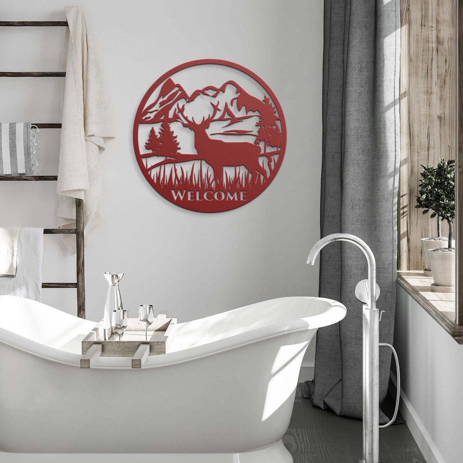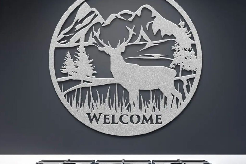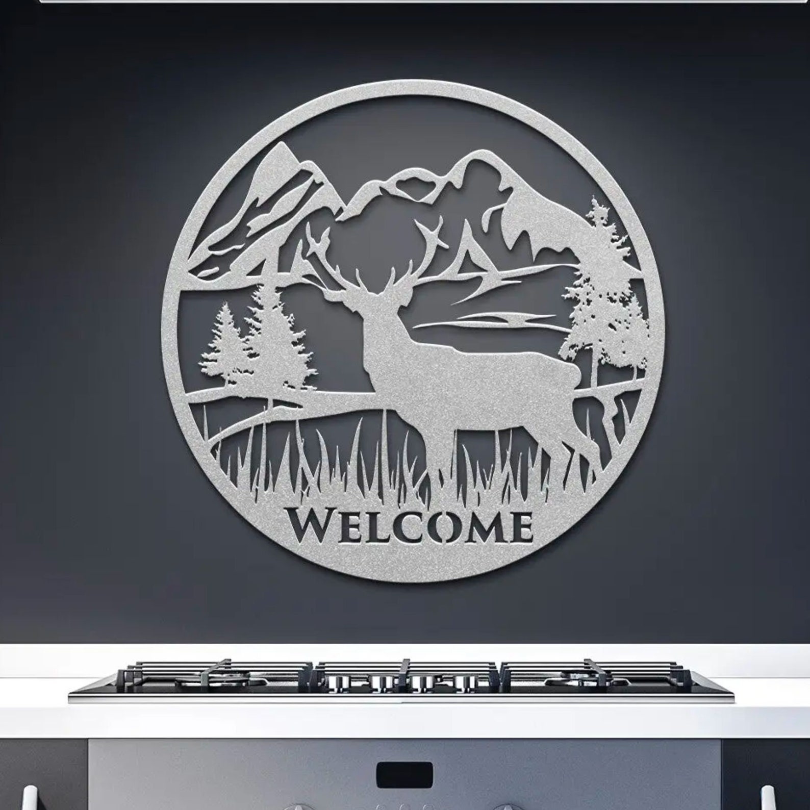 Welcome Deer Metal Sign, Custom Deer Sign, Mountain Deer Metal Sign, Housewarming or Wedding Gift, Hunting Cabin Sign