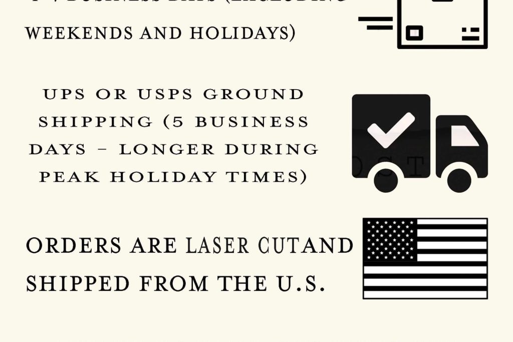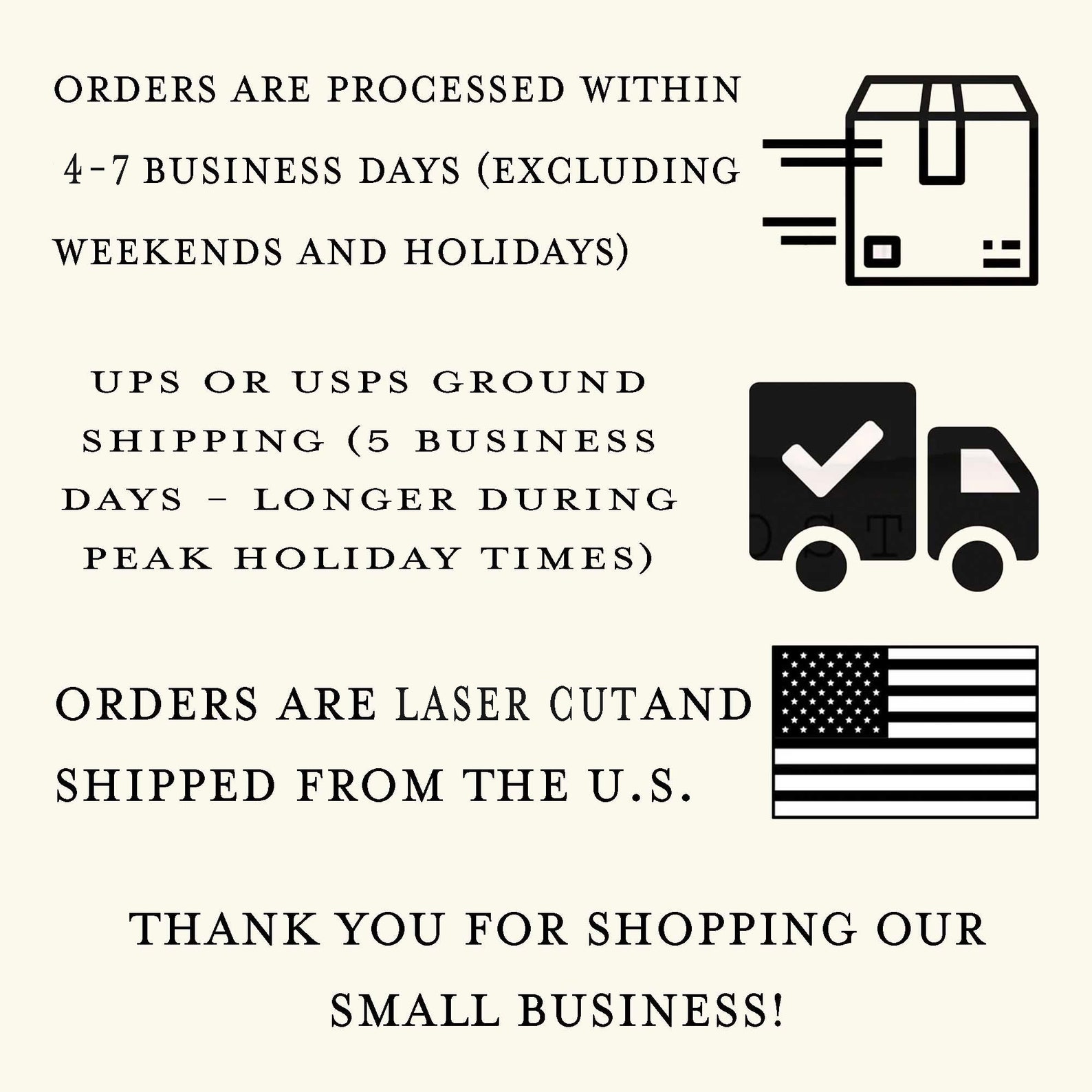 This is custom handcrafted and laser cut to your order. Production takes 4-7 business days (longer during peak seasons) plus shipping (FedEx). Please allow the time necessary for us to make your personalized gift.