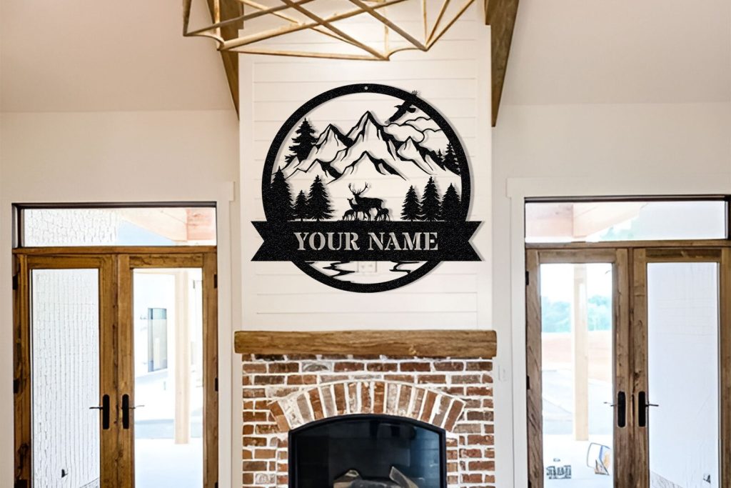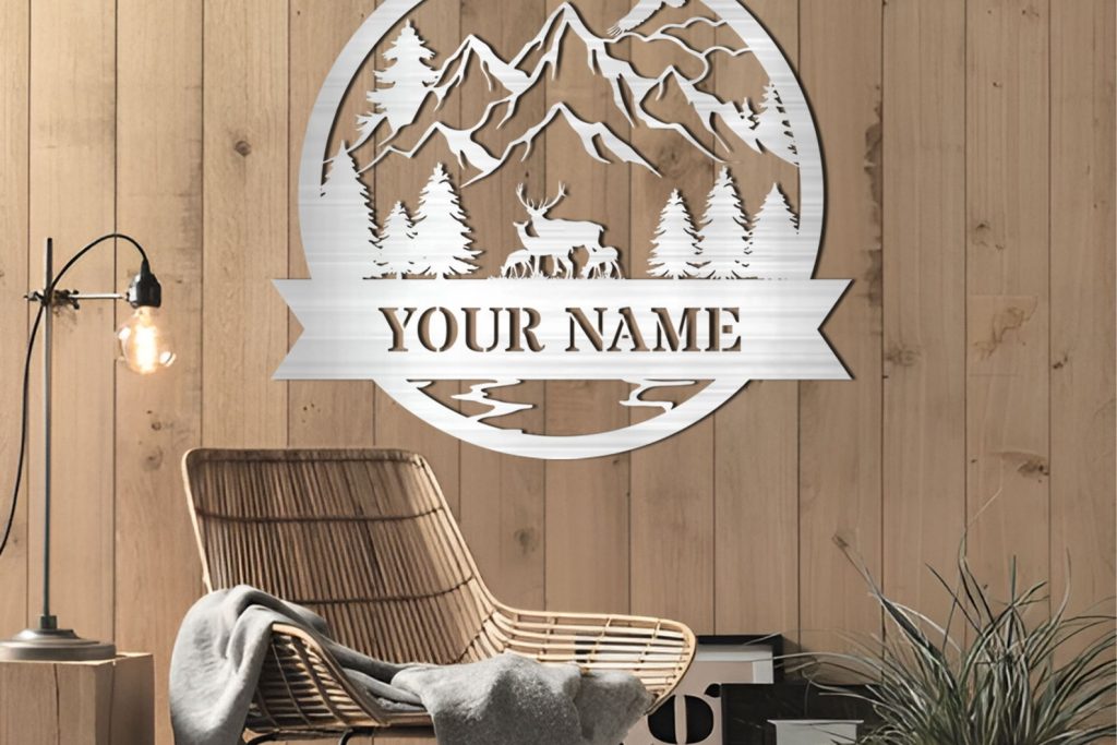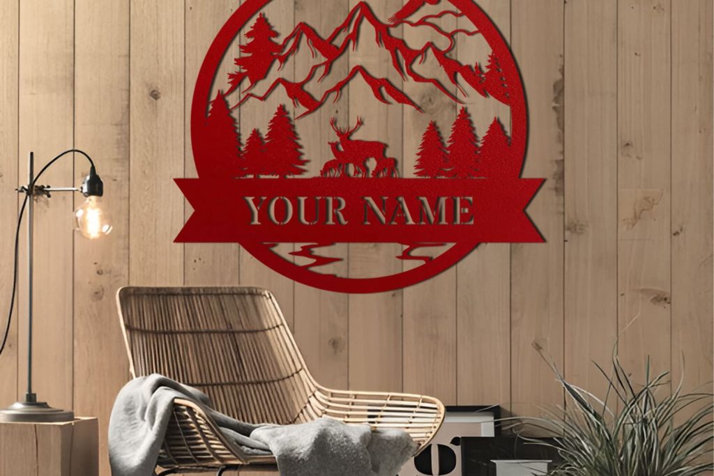 Deer Sign,Deer Antler Decor,Deer Hunter Gift,Deer Camp Sign,Christmas Gift For Him,Deer Name Metal Sign,Wedding Monogram,Fathers Day Gift