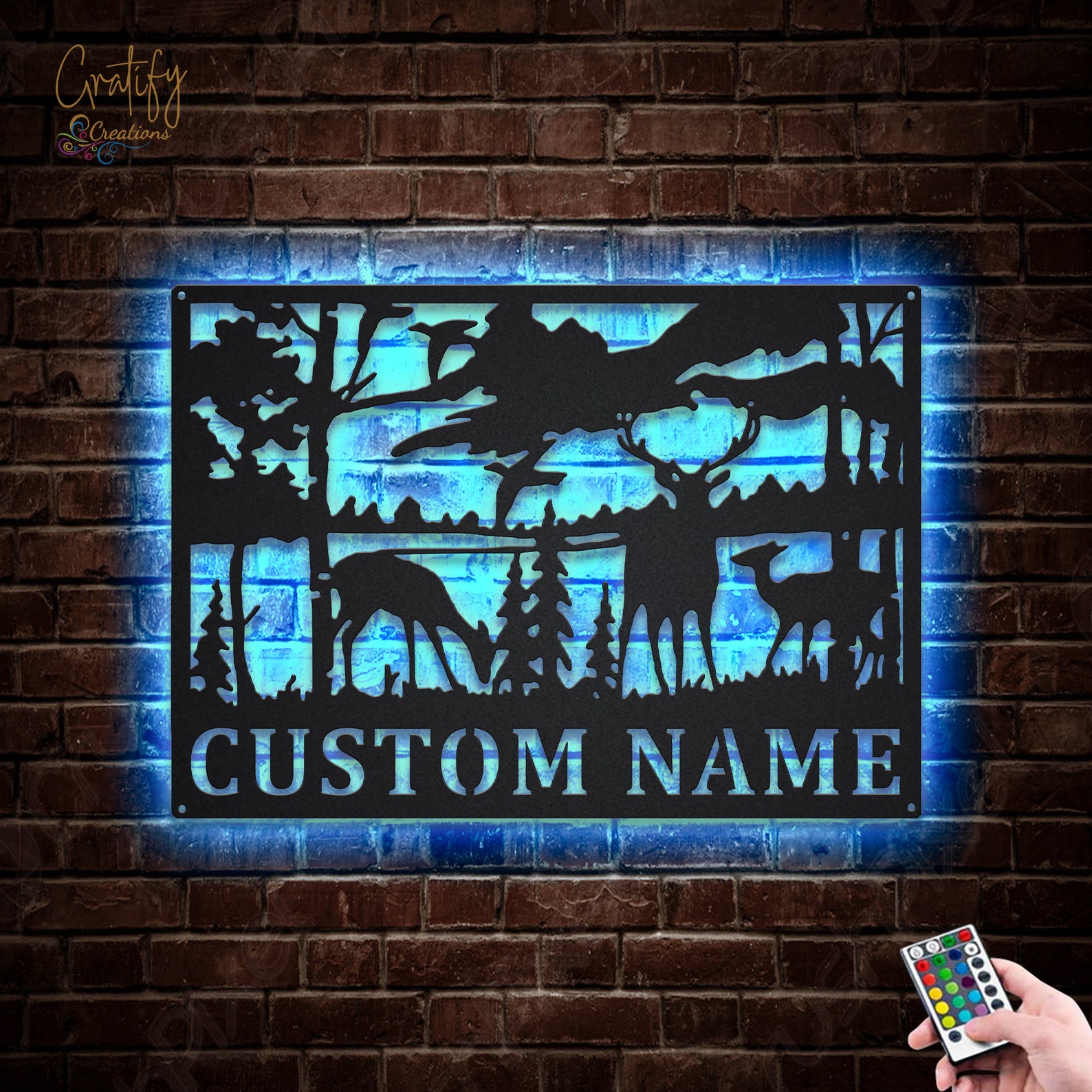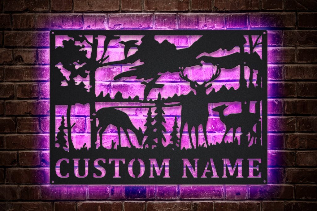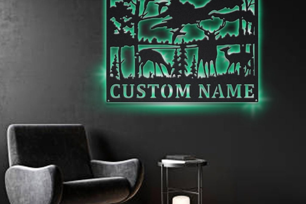 Revamp your hunting cabin with our Custom Deer Hunting Monogram Metal Sign that comes with LED lights. It9;s a perfect addition to your collection of hunting memorabilia. Made with high-quality metal, this sign features a stylish deer design that will surely elevate the aesthetics of your space.