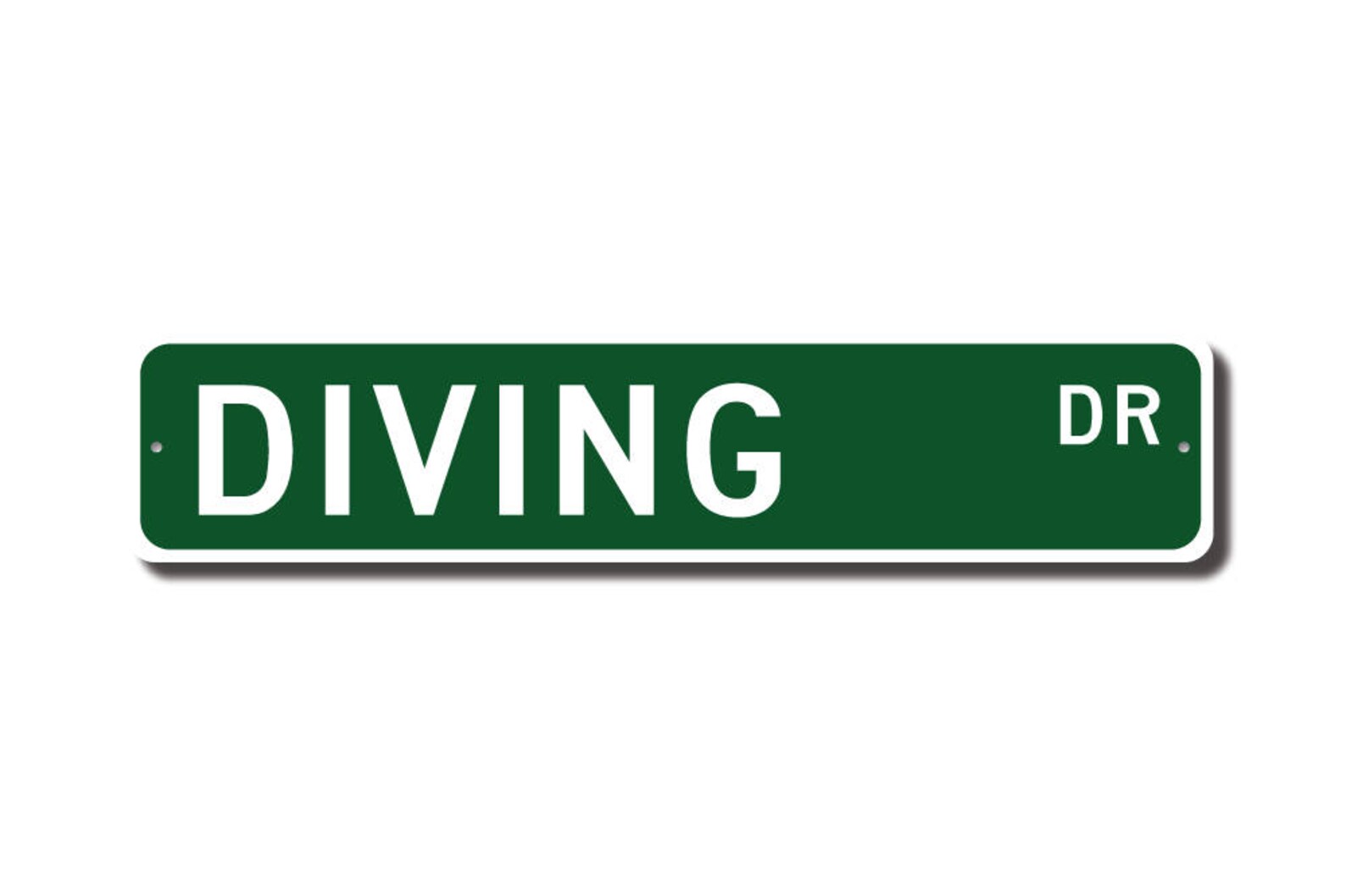 Diving lovers check out this awesome street sign! This will make the perfect piece for any Diving fan, or maybe you are a Diving lover looking for a cool decor piece ! Made of premium aluminum it will stand the test of time. This sign will look great in any room, home den, cave, or office ! Get this sign for your favorite Diving aficionado !