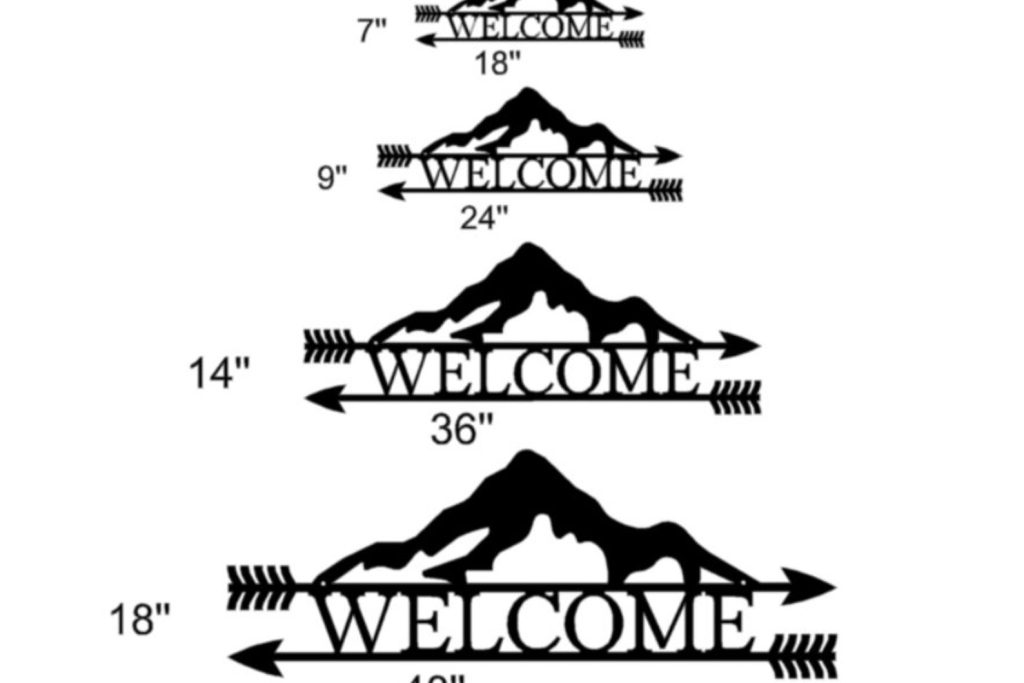 Double Arrow Mountain Range Welcome Sign. This Rustic metal wall decoration will make a great Wedding, Anniversary, or Christmas gift. Adventure awaits a great wall hanging as part of your farmhouse decor or some metal words of inspiration to hang just about anywhere you9;d like : )