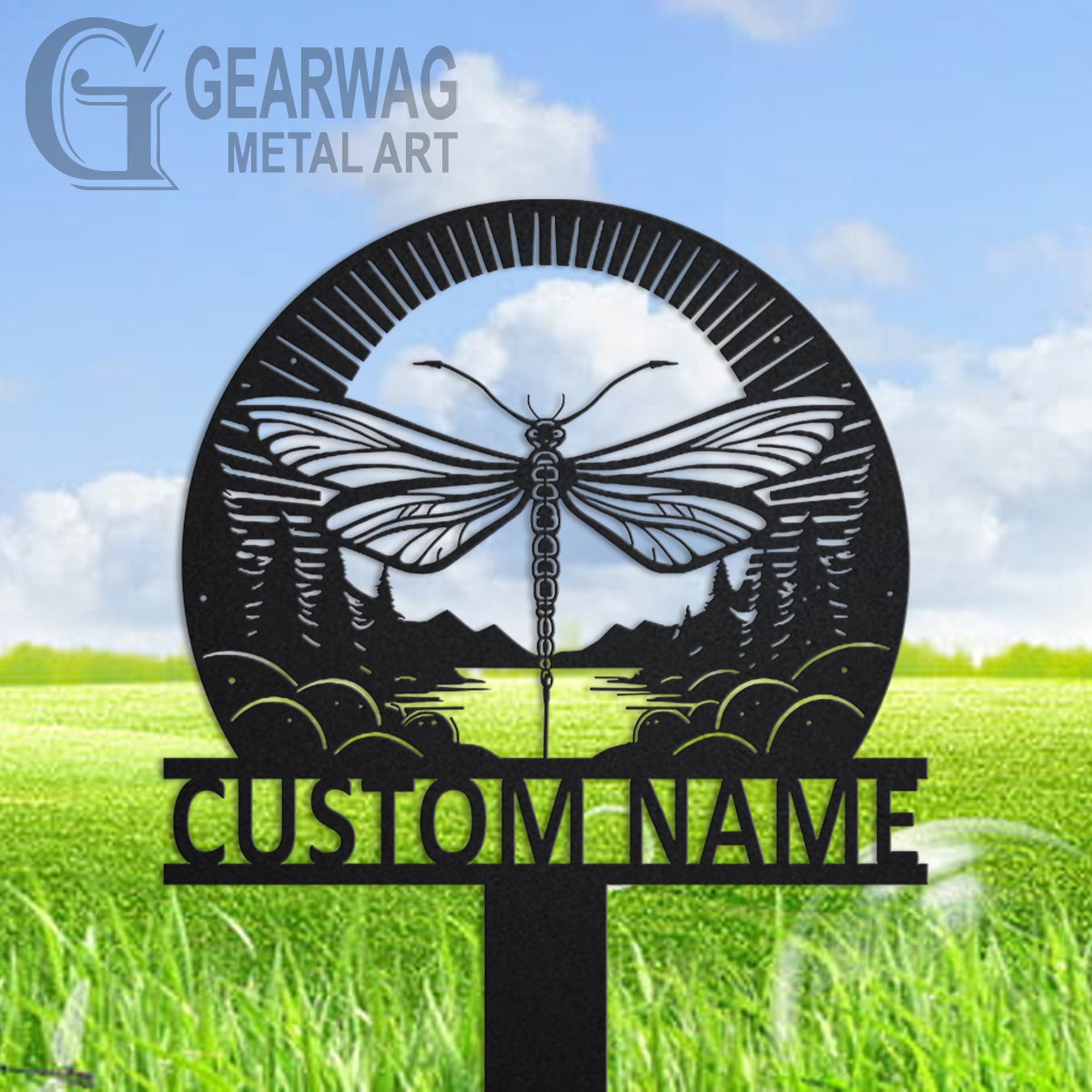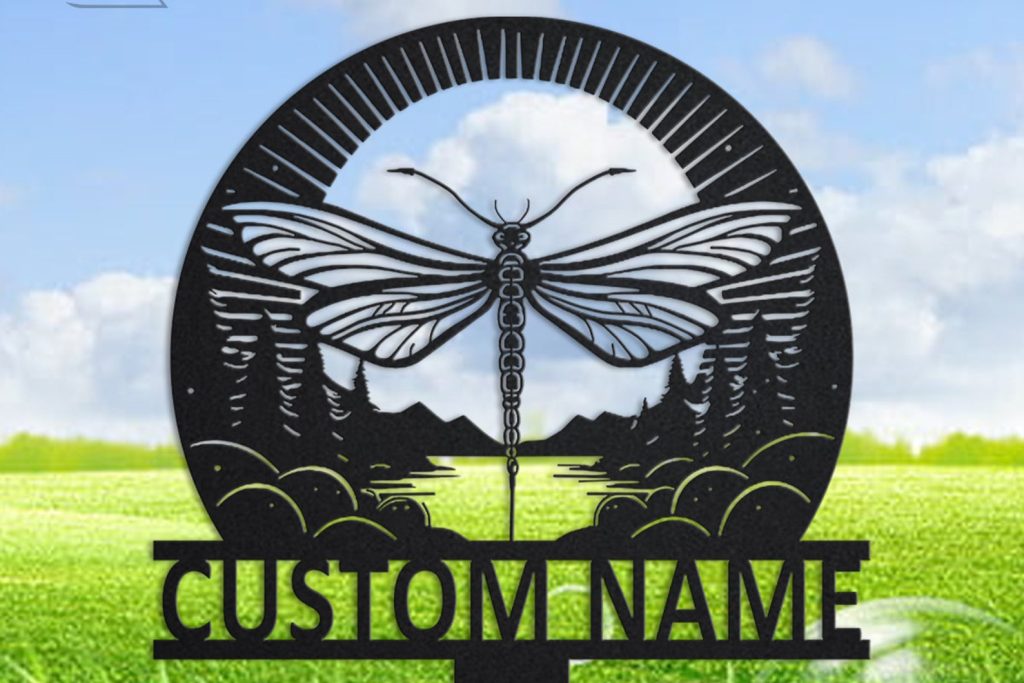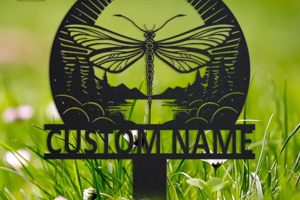 Dragonfly Garden Sign – Custom Metal Floral Stake