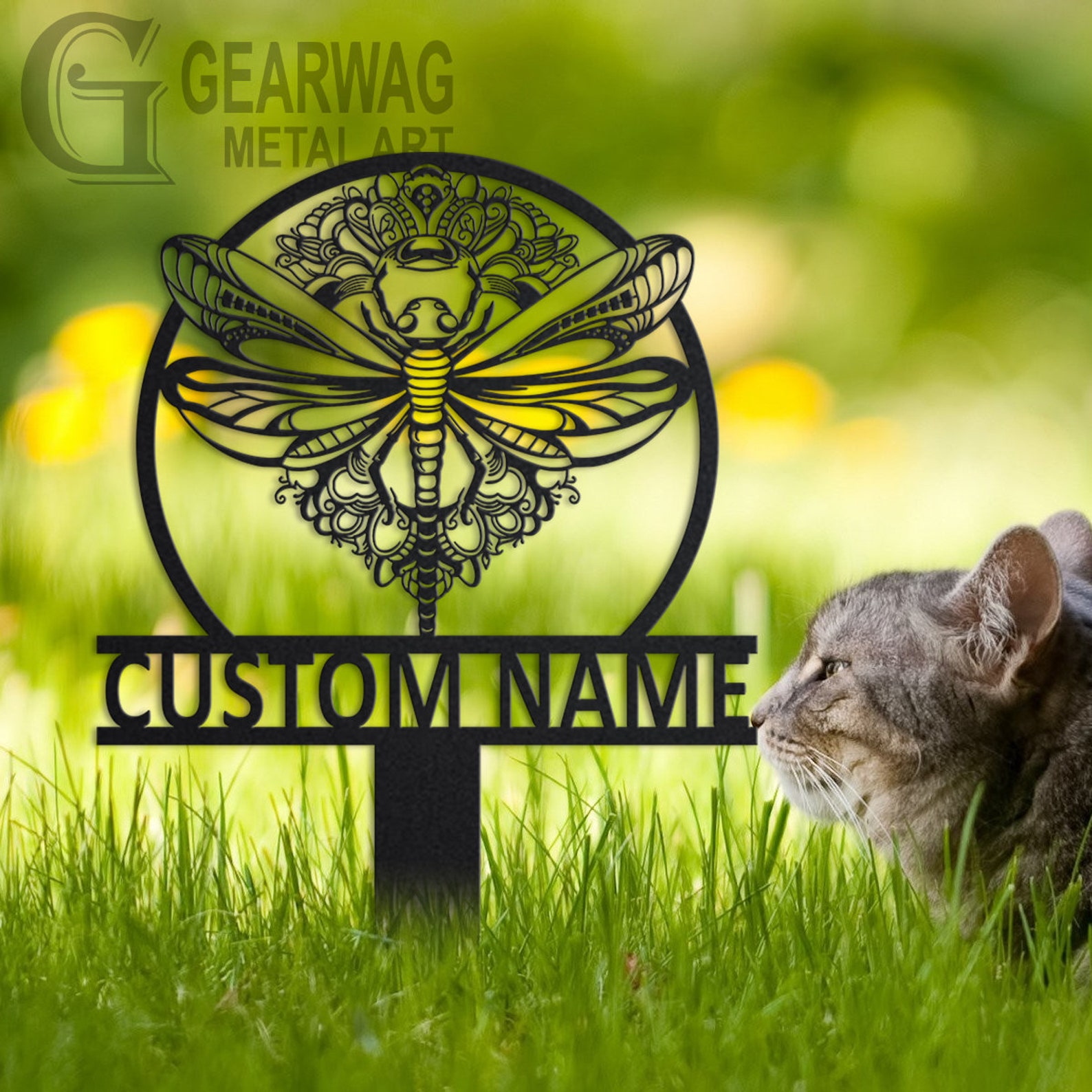 Dragonfly Garden Sign – Custom Metal Floral Stake