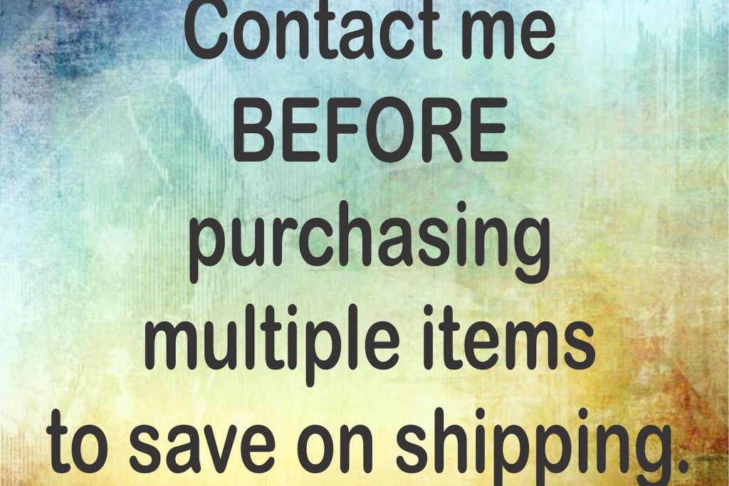 Contact me BEFORE purchasing multiple items to save on shipping. After the the items are purchased it is not possible.