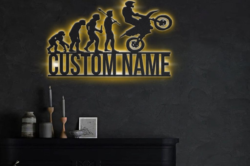 Keywords you can find more related to this product: personalized dirt bike metal sign, LED dirt bike wall art, biker name sign, motocross rider home decor, motorcycle biker gift