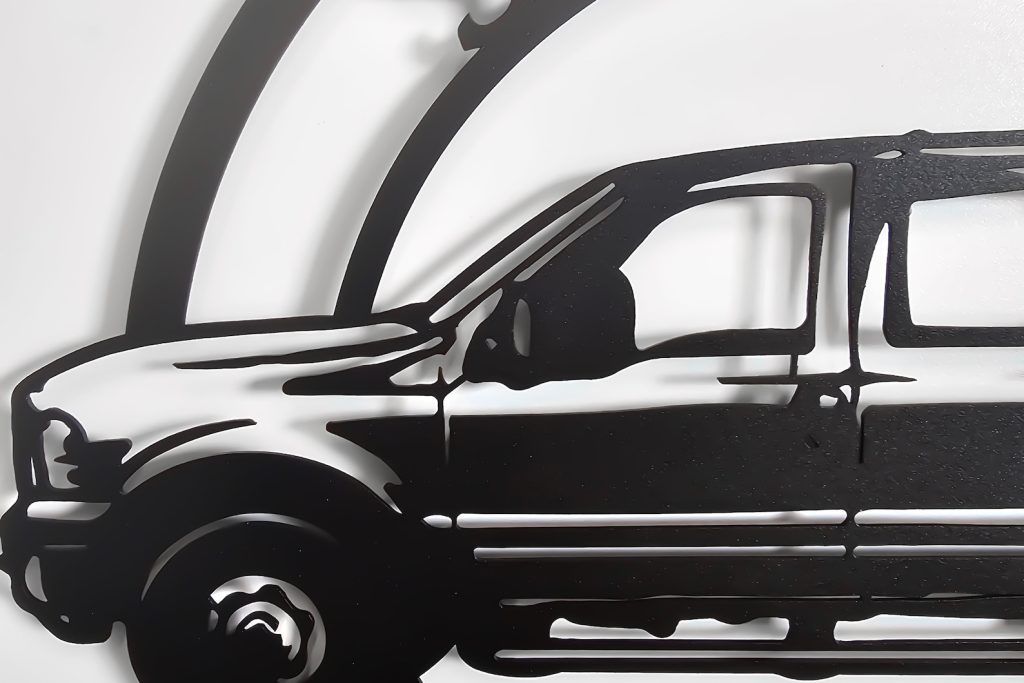 After purchase your order goes through our cutting process where it is designed, programmed, then precisely cut by our top of the line Craftsens fiber lasers. Me then make sure the metal is properly cleaned & cut before going to the next step. Now that the sign has been cut, cleaned it can now go through our powder coating system where your sign is hung and ran though our automated powder line so your sign comes out looking perfect.