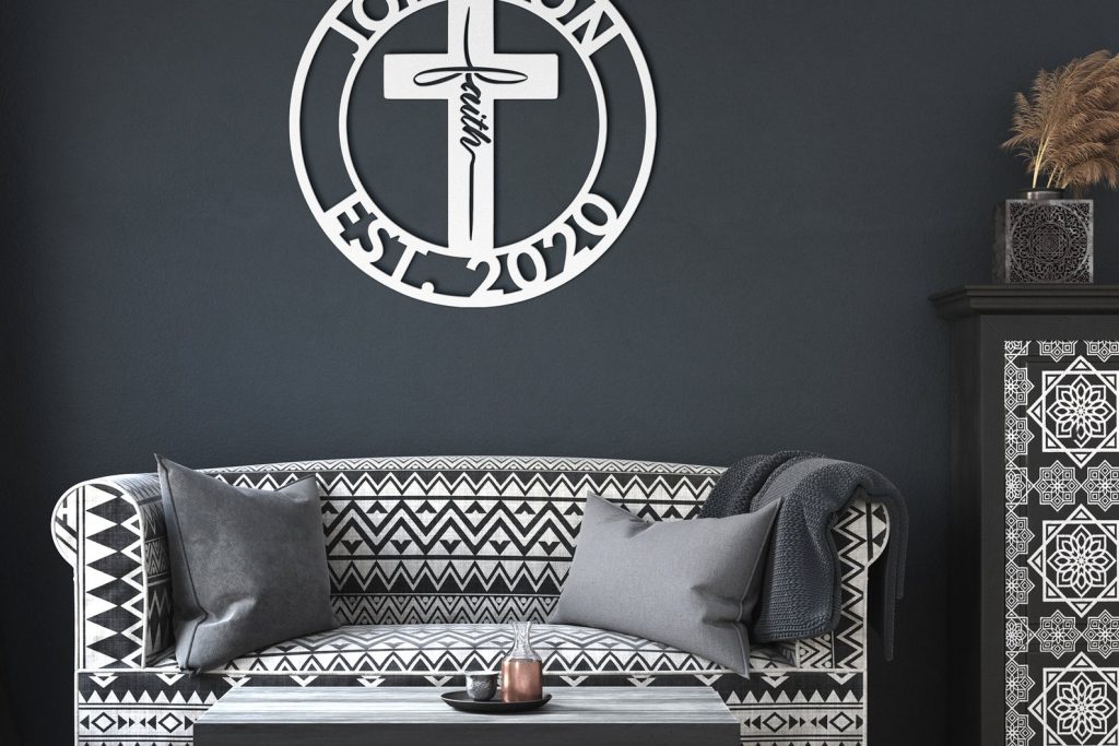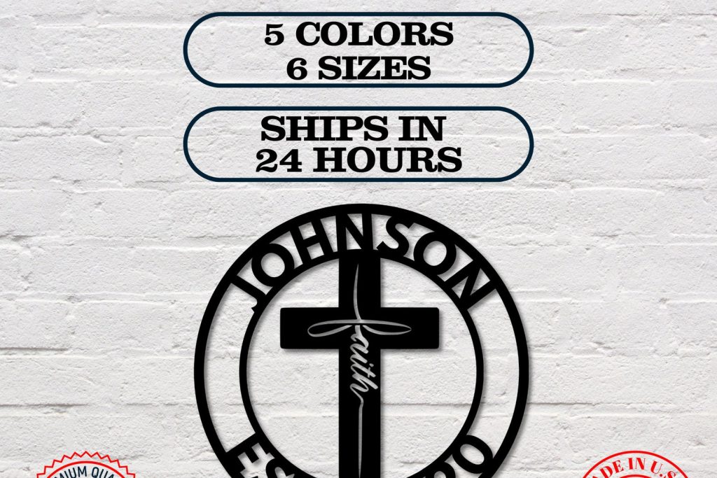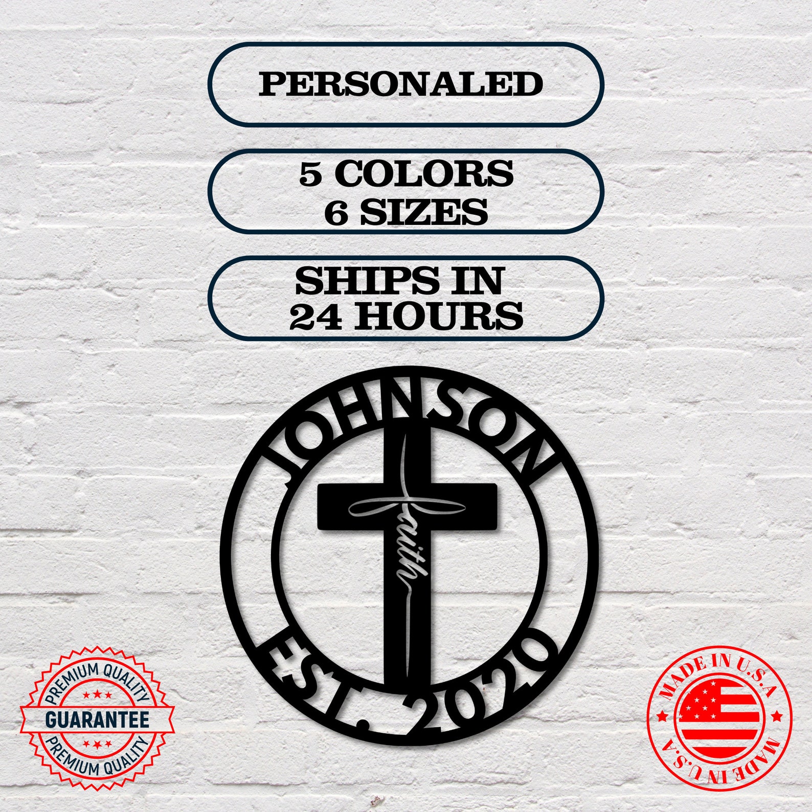 Be the first to review “Faith Cross Metal Sign with Family Name”