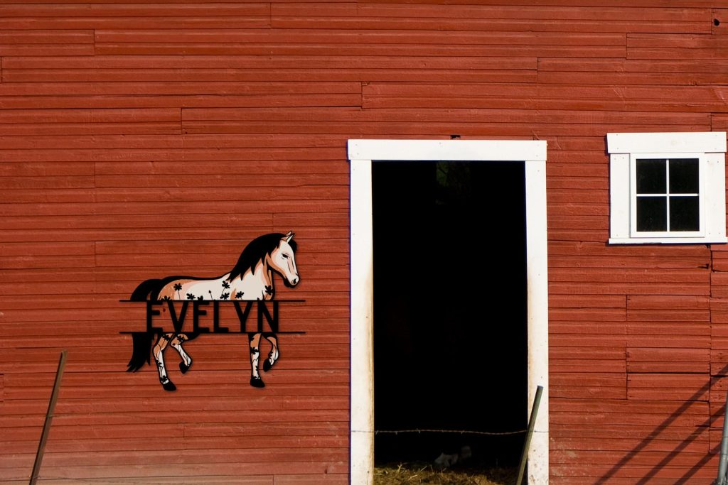 Equestrian Charm: Celebrate your love for horses and the rustic beauty of ranch life with this personalized metal sign. It9;s perfect for hanging on your door, porch, or as a statement piece in your barn.