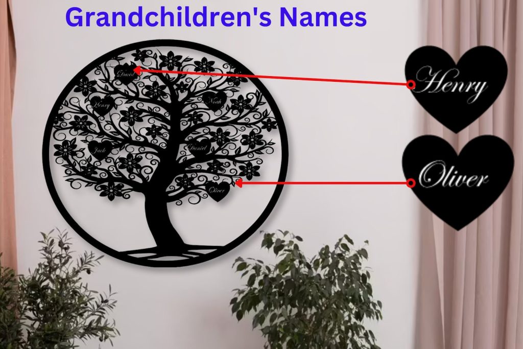 Family Tree Metal Sign with Childrens or Grandchildren9;s Names is a unique personalized gift, perfect for grandparents, beautifully combines artistry and personalization. Symbolizing the strength of family love, it serves as a heartfelt reminder of the cherished connections we share.