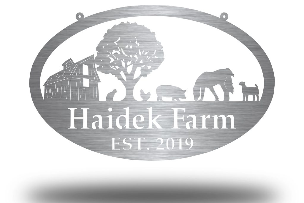 Our Personalized Farm Metal Sign is made out of 14 gauge 100% USA steel and can be powder coated front and back for the HIGHEST QUALITY!