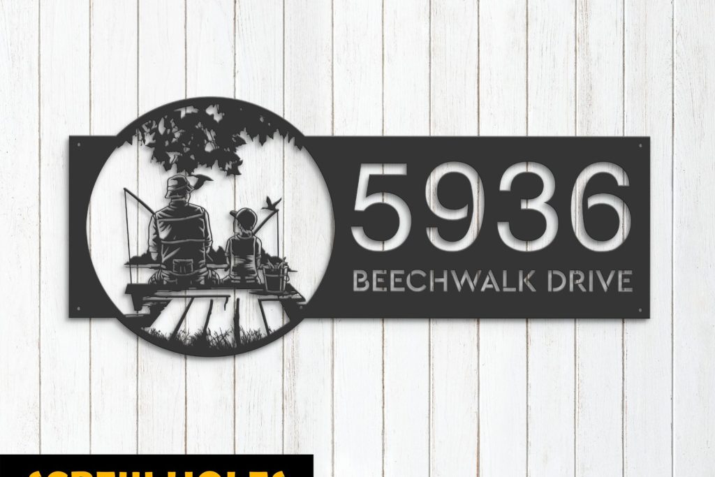 Be the first to review “Father and Son Fishing Sign – Personal Metal Address Decor”