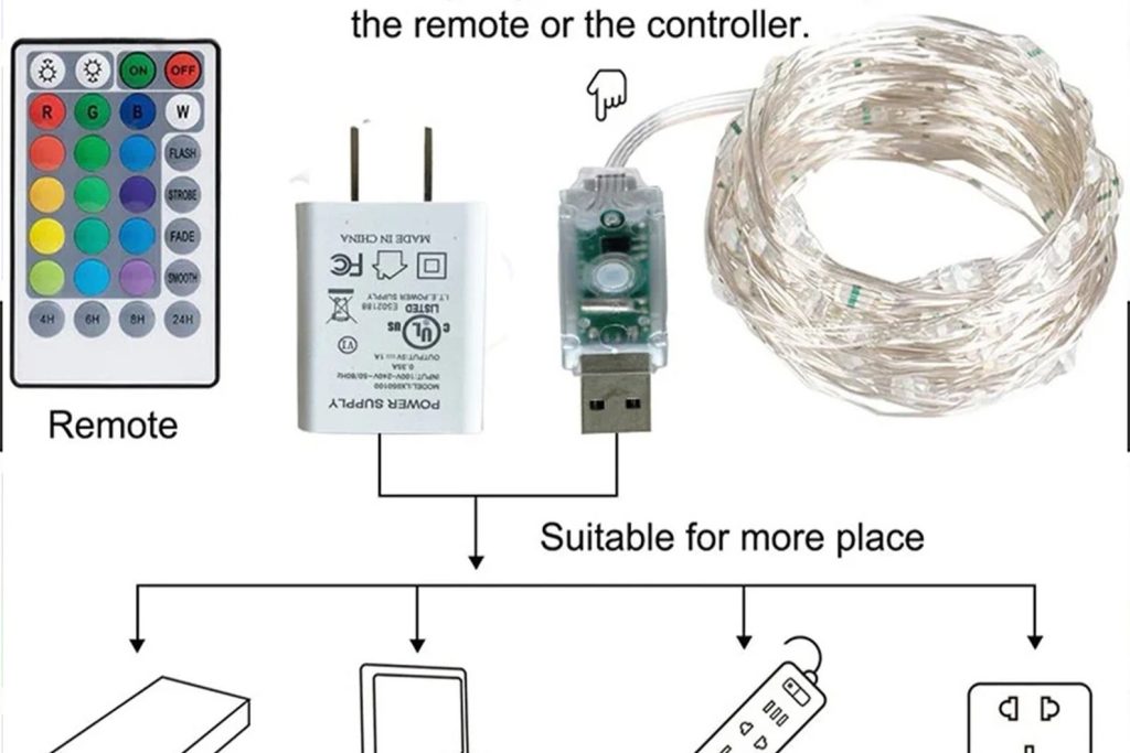 The USB plug allows you to plug this string of LEDs into a USB hub and power adapter. You can go to the store and buy a CR2025 coin cell battery.