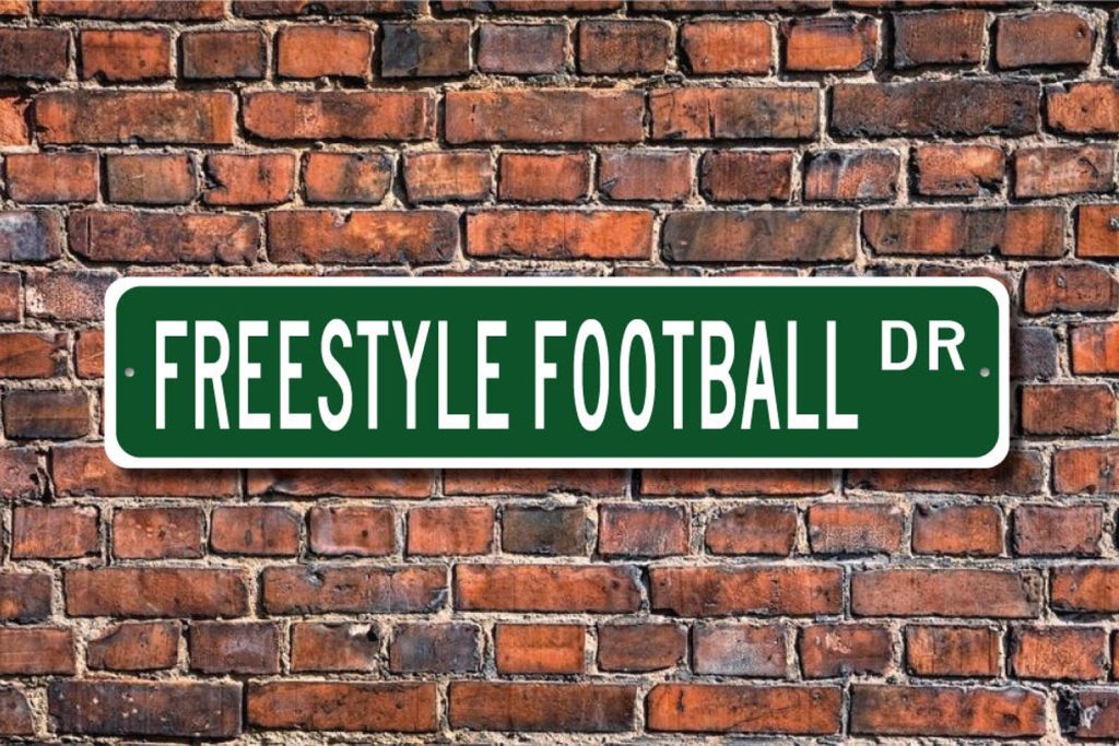 Freestyle Football lovers check out this awesome street sign! This will make the perfect piece for any Freestyle Football fan, or maybe you are a Freestyle Football lover looking for a cool decor piece ! Made of premium aluminum it will stand the test of time. This sign will look great in any room, home den, cave, or office ! Get this sign for your favorite Freestyle Football aficionado !