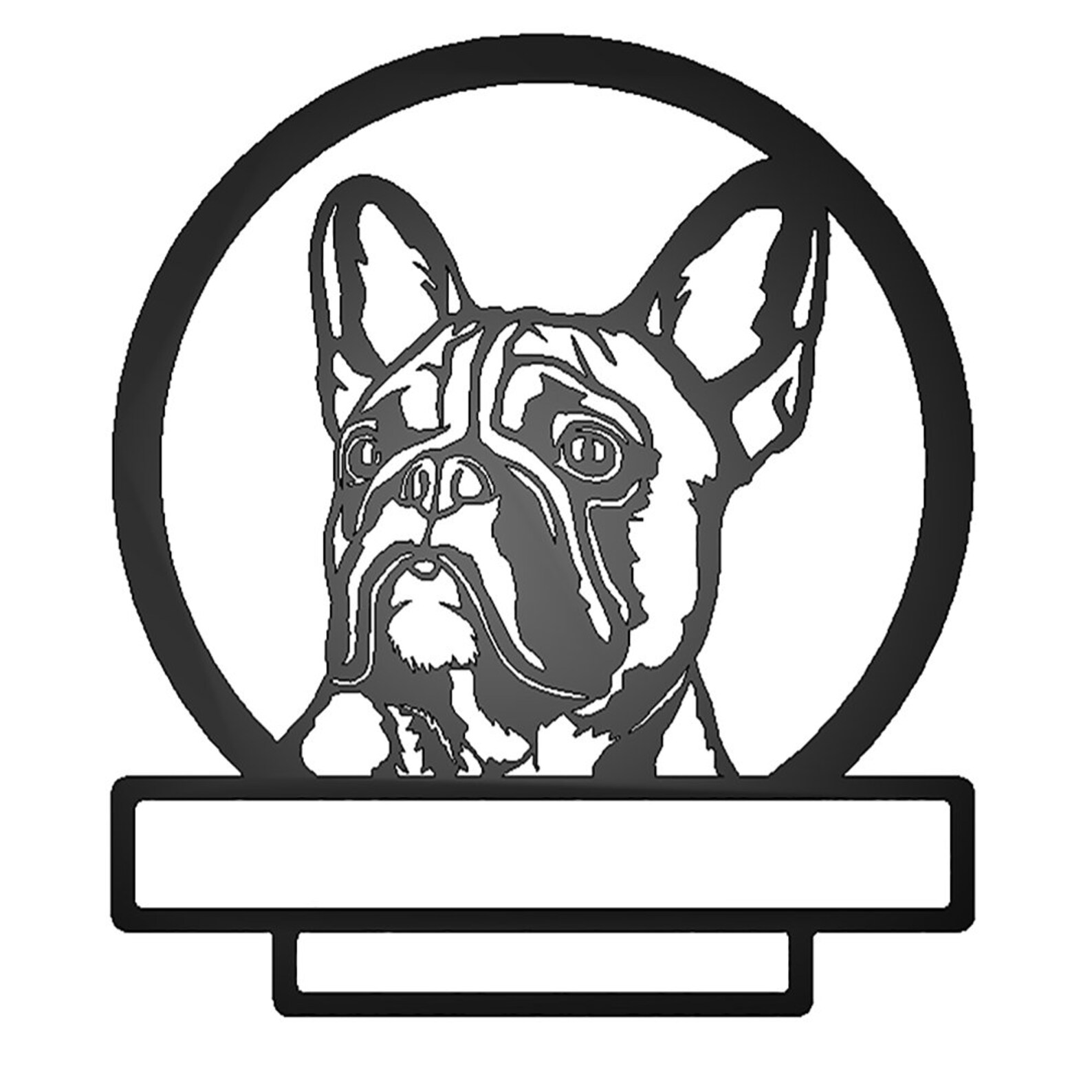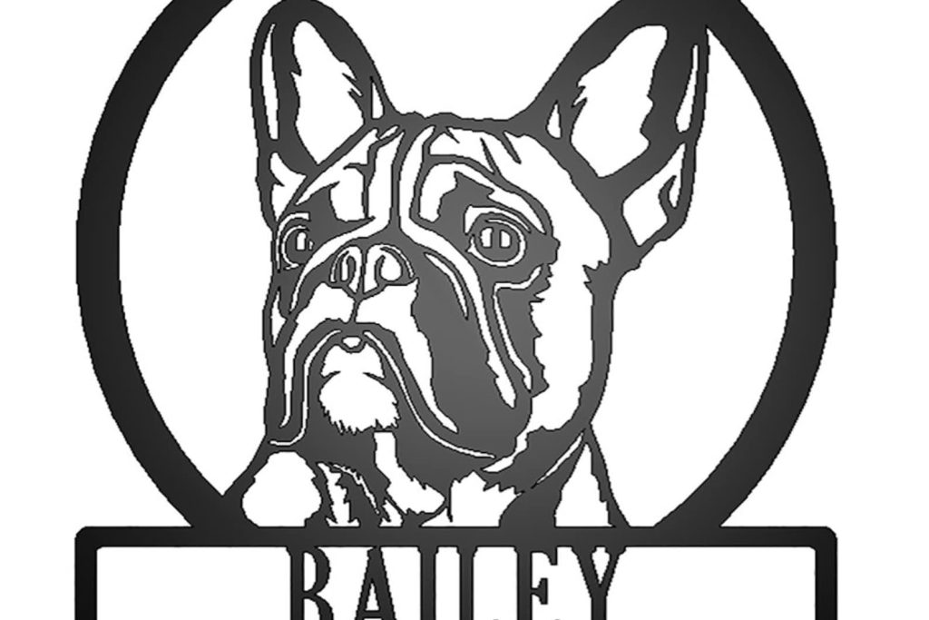 The French Bulldog is a beloved breed, known for their muscular build and unique wrinkled appearance. Our French Bulldog metal sign accurately captures the distinct features of these pups, including their broad head, bat-like ears, and adorable wrinkles. Personalize the sign by adding your pup9;s name and relative date. Made from 16 gauge cold rolled steel, our laser ensures precise cutting for stunning details while remaining lightweight for easy wall hanging. With a welded rear hanger and powder coat finish, this sign is durable enough for both indoor and outdoor display. Choose from various sizes for the perfect fit.