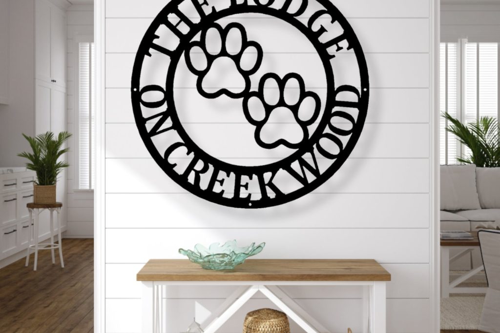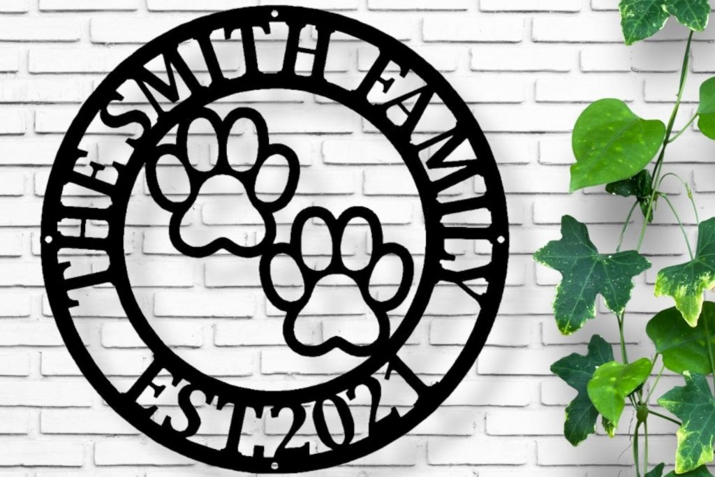 Front Door Monogram Paw Print Metal Sign