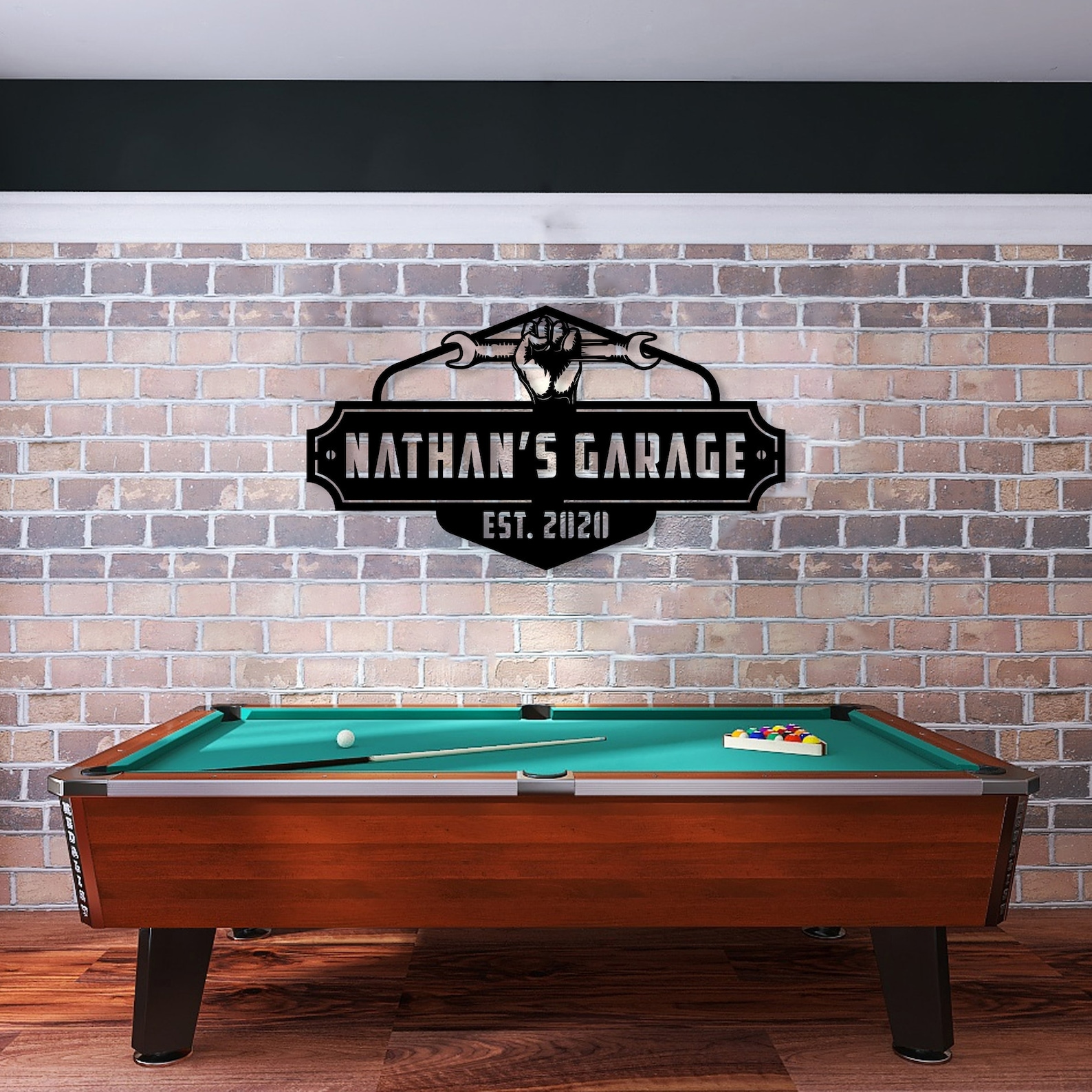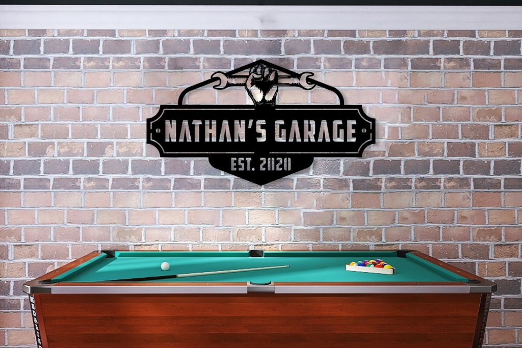 Custom Metal Garage Sign, Personalized Garage Wall Art, Man Cave Sign, Car Shop Decor, Tools Design Garage Hanging, Gift for Dad,Outdoor Art