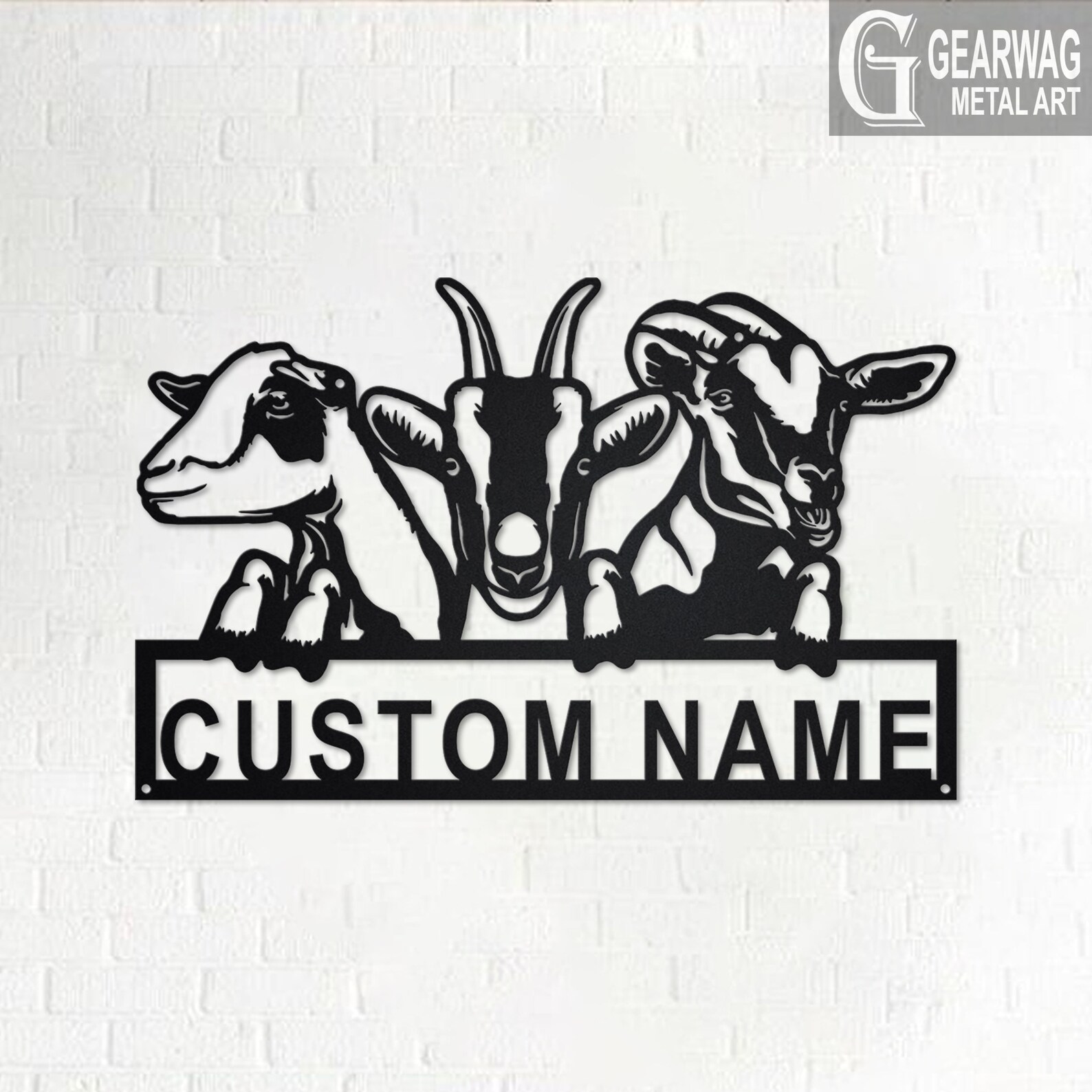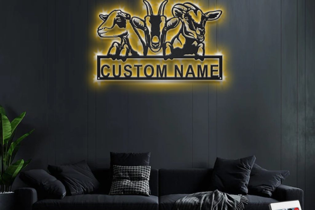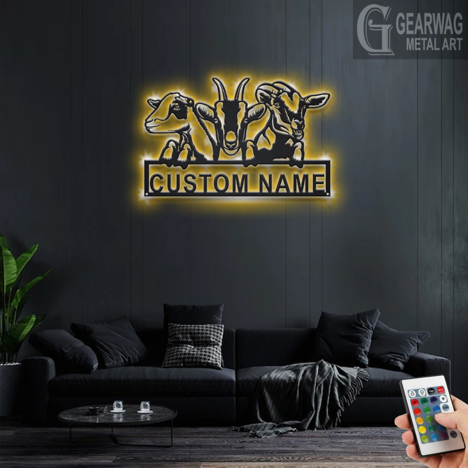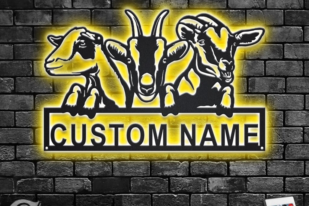 Goat Metal Wall Art: Custom Farm Name Sign, LED Decor
