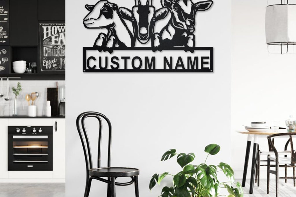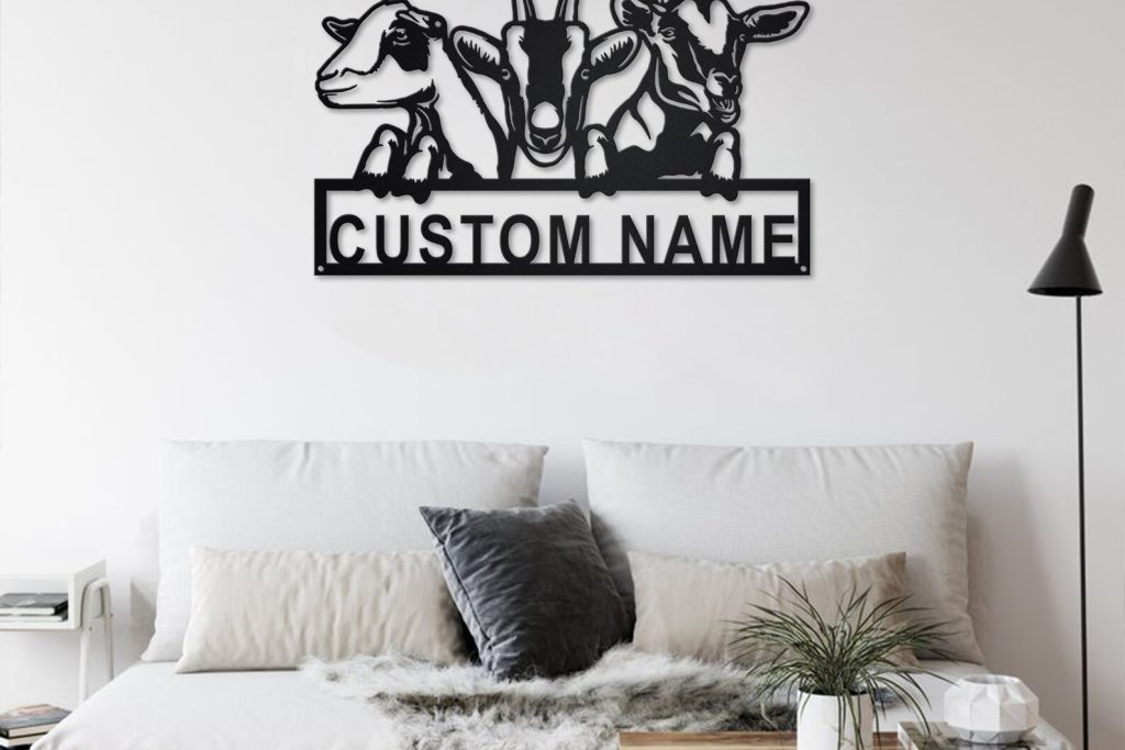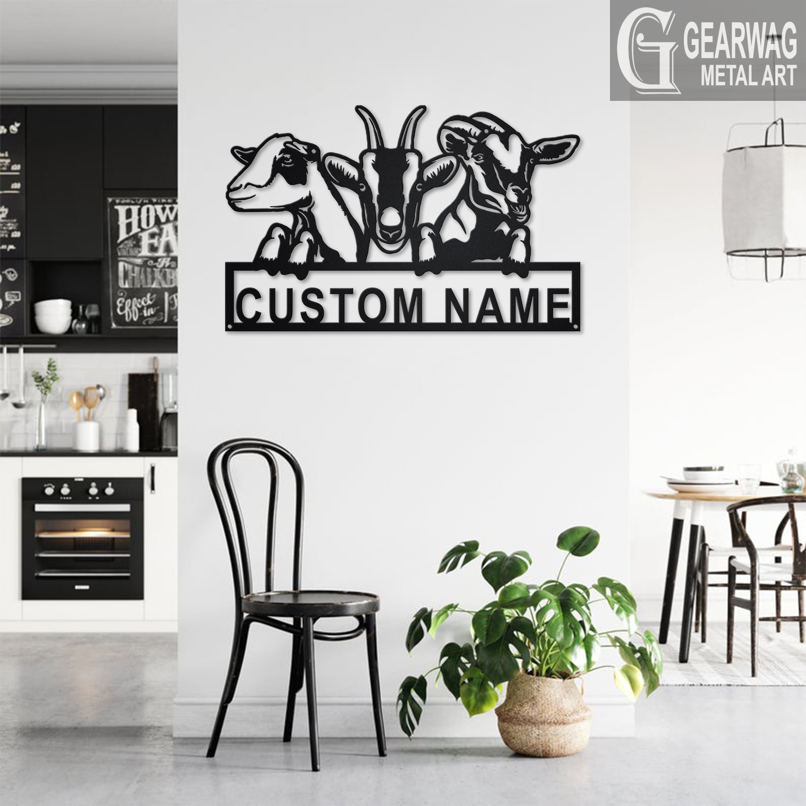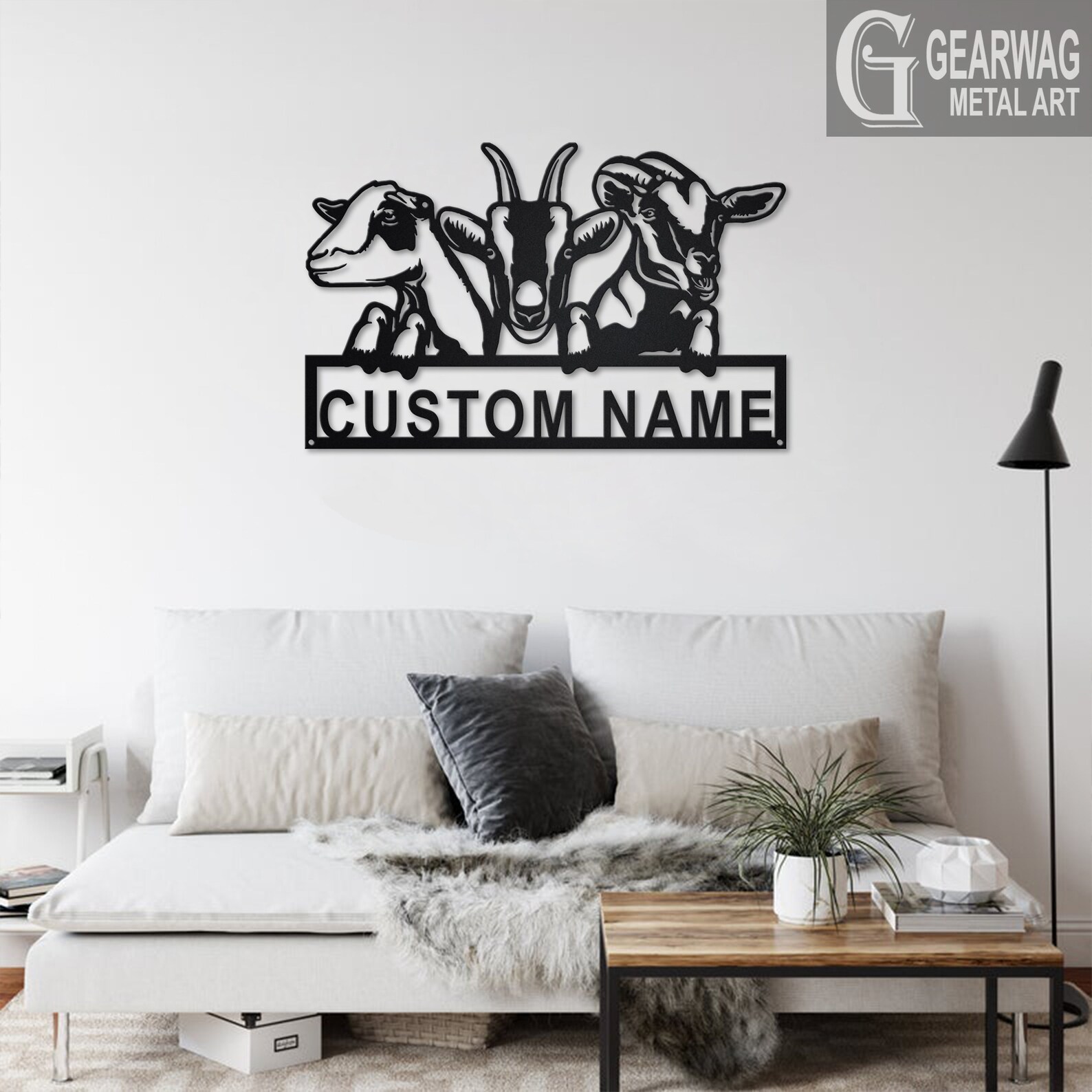 Goat Metal Wall Art: Custom Farm Name Sign, LED Decor