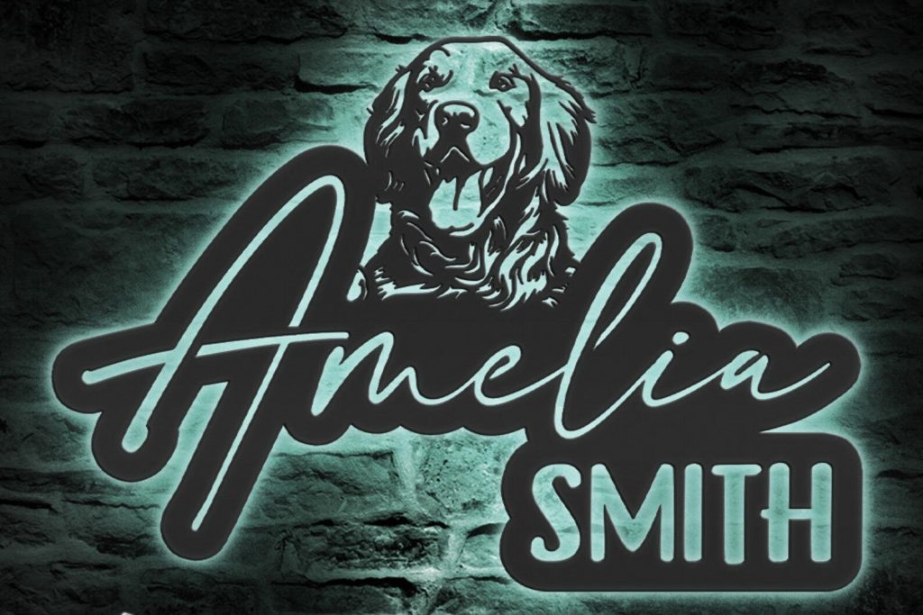 Be the first to review “Golden Retriever Metal Name Sign with LED”