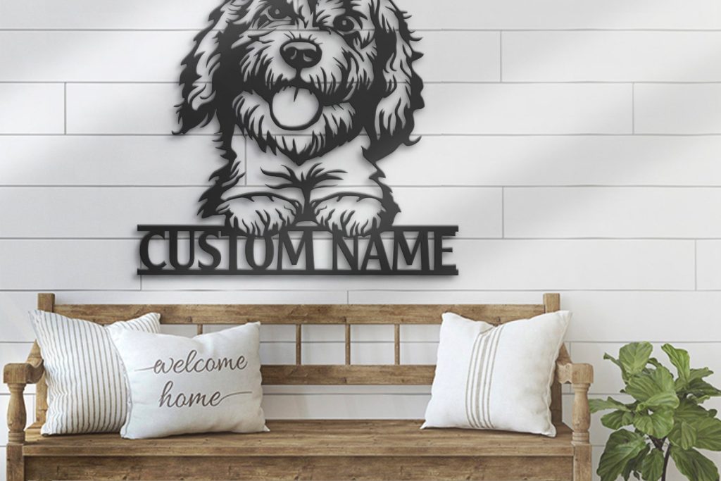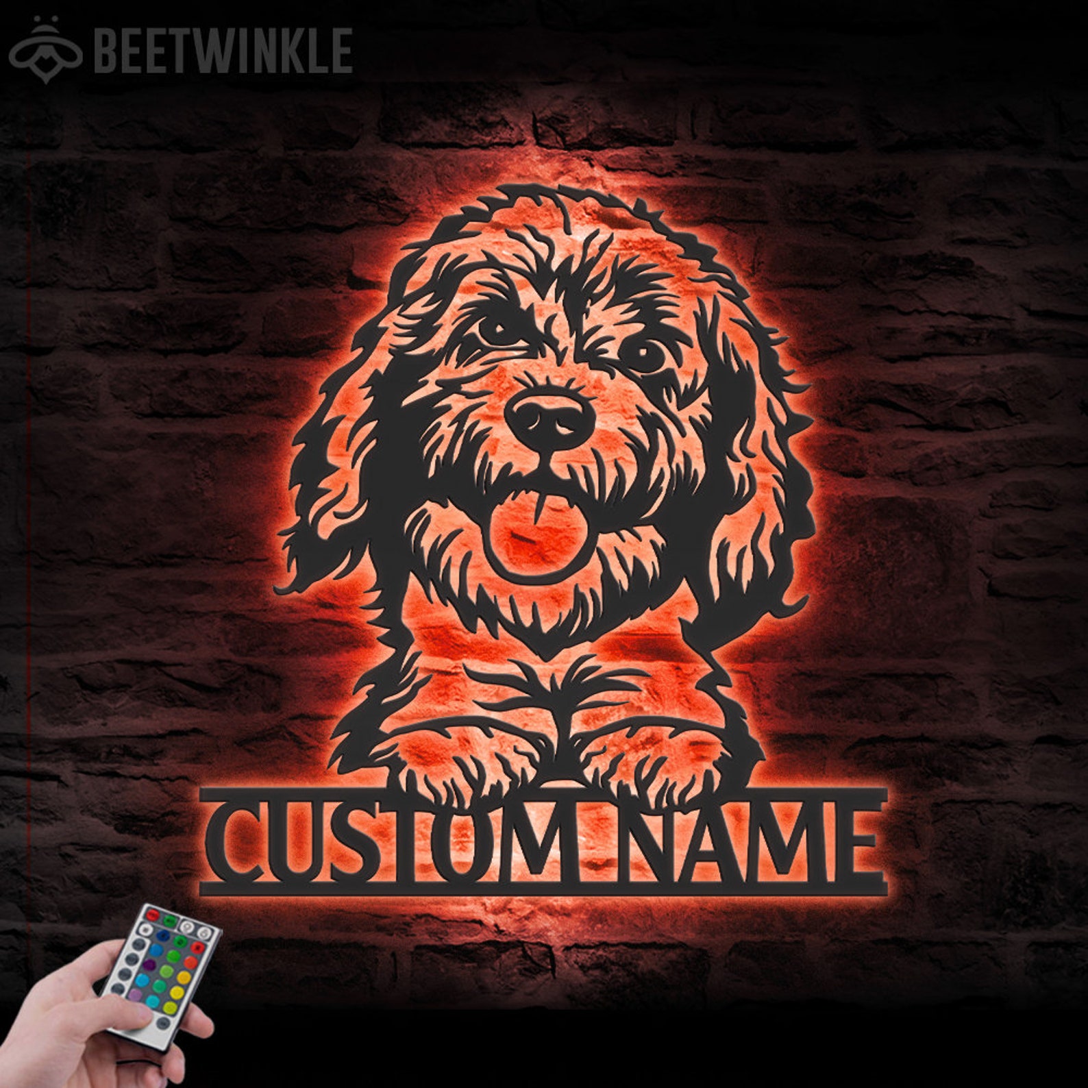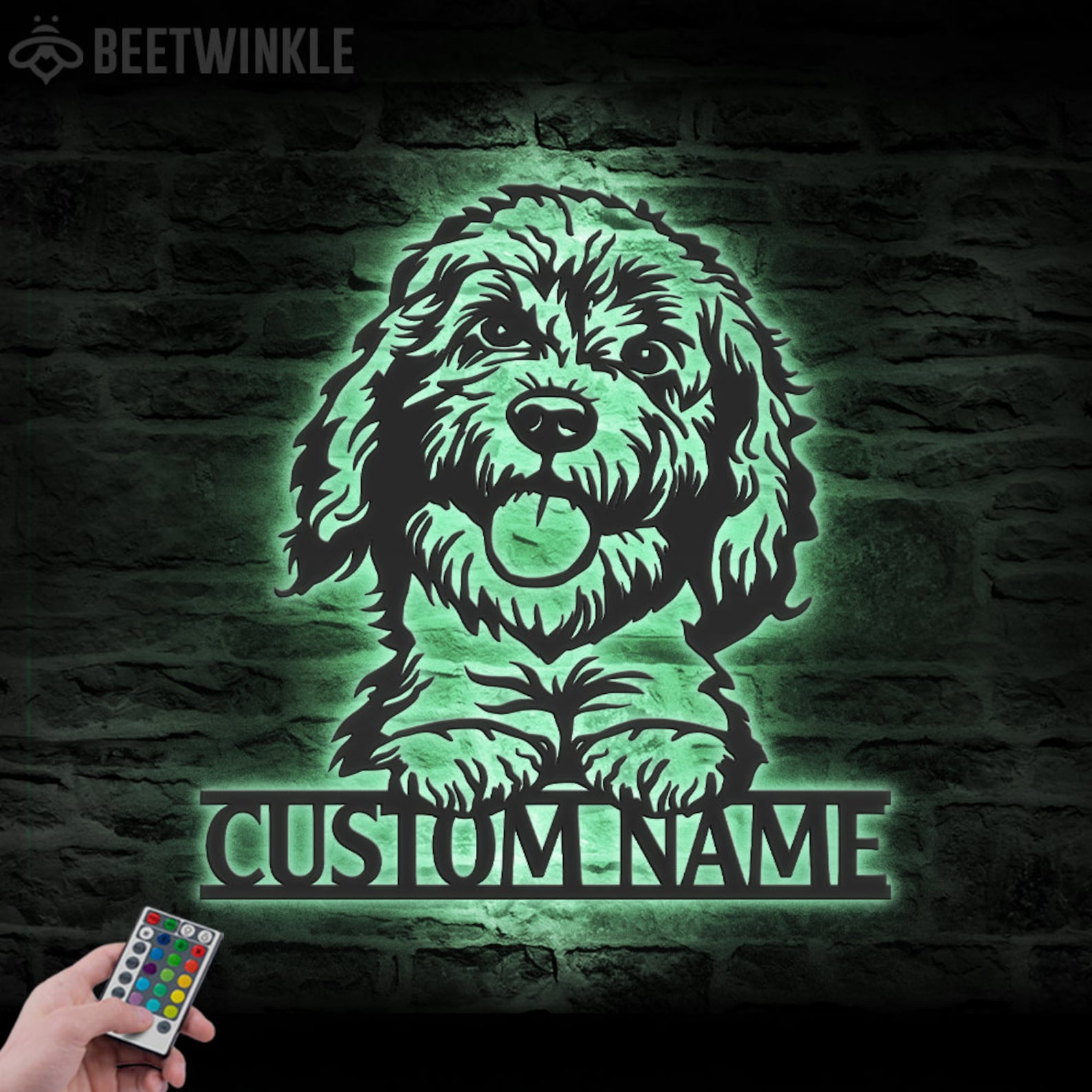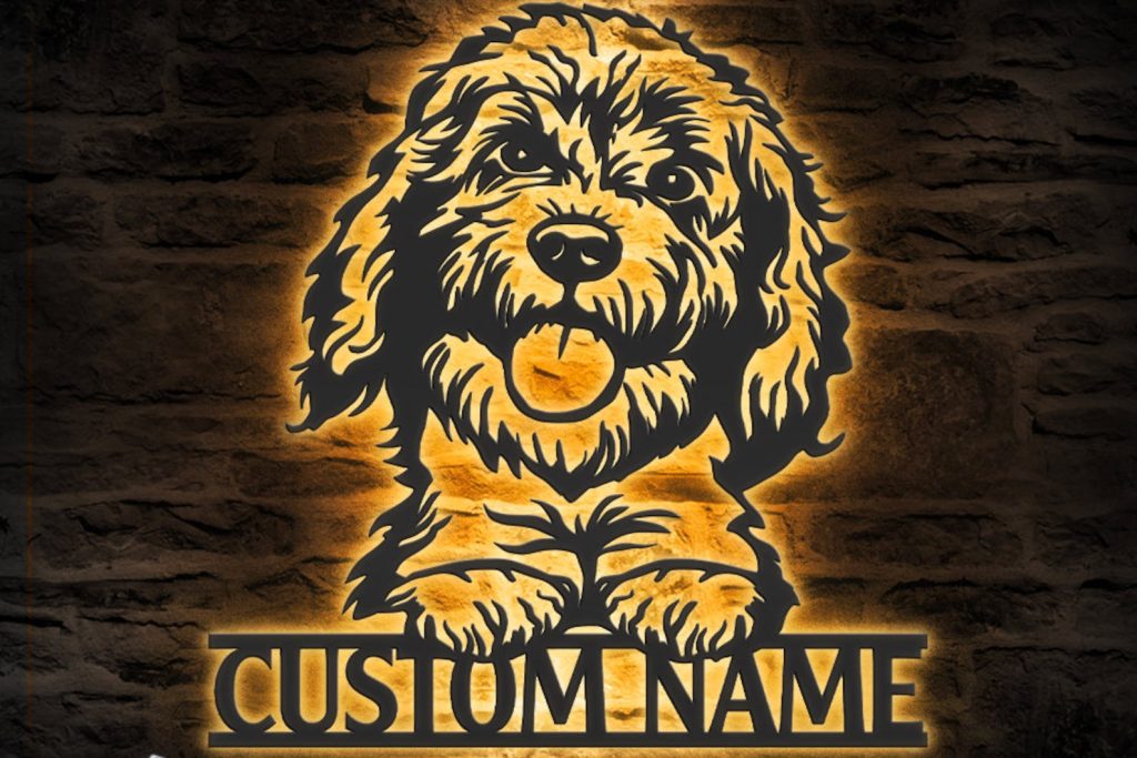 Be the first to review “Goldendoodle Metal Wall Art with LED – Personalized Name Sign”