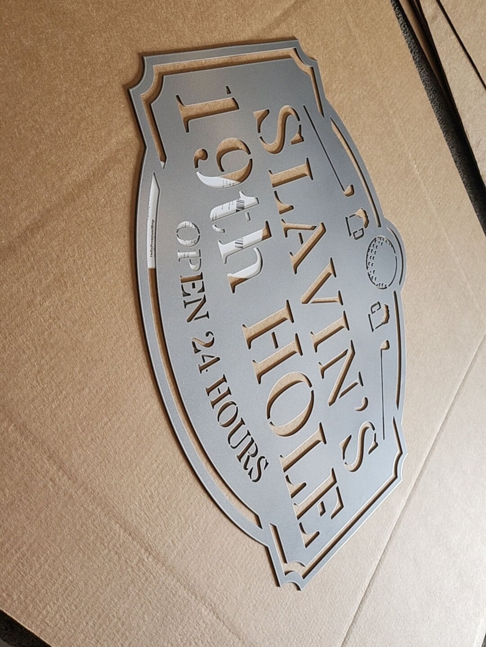 Elevate your home bar with our personalized Golf-themed sign. Crafted with attention to detail, this stylish metal sign can be personalized with your name or message to make it truly unique. Perfect for avid golfers and enthusiasts, this sign adds a touch of sophistication and charm to your home bar, inviting friends and fellow golf lovers to gather and enjoy drinks in a rela and inviting atmosphere. Swing into style with this custom-made masterpiece.