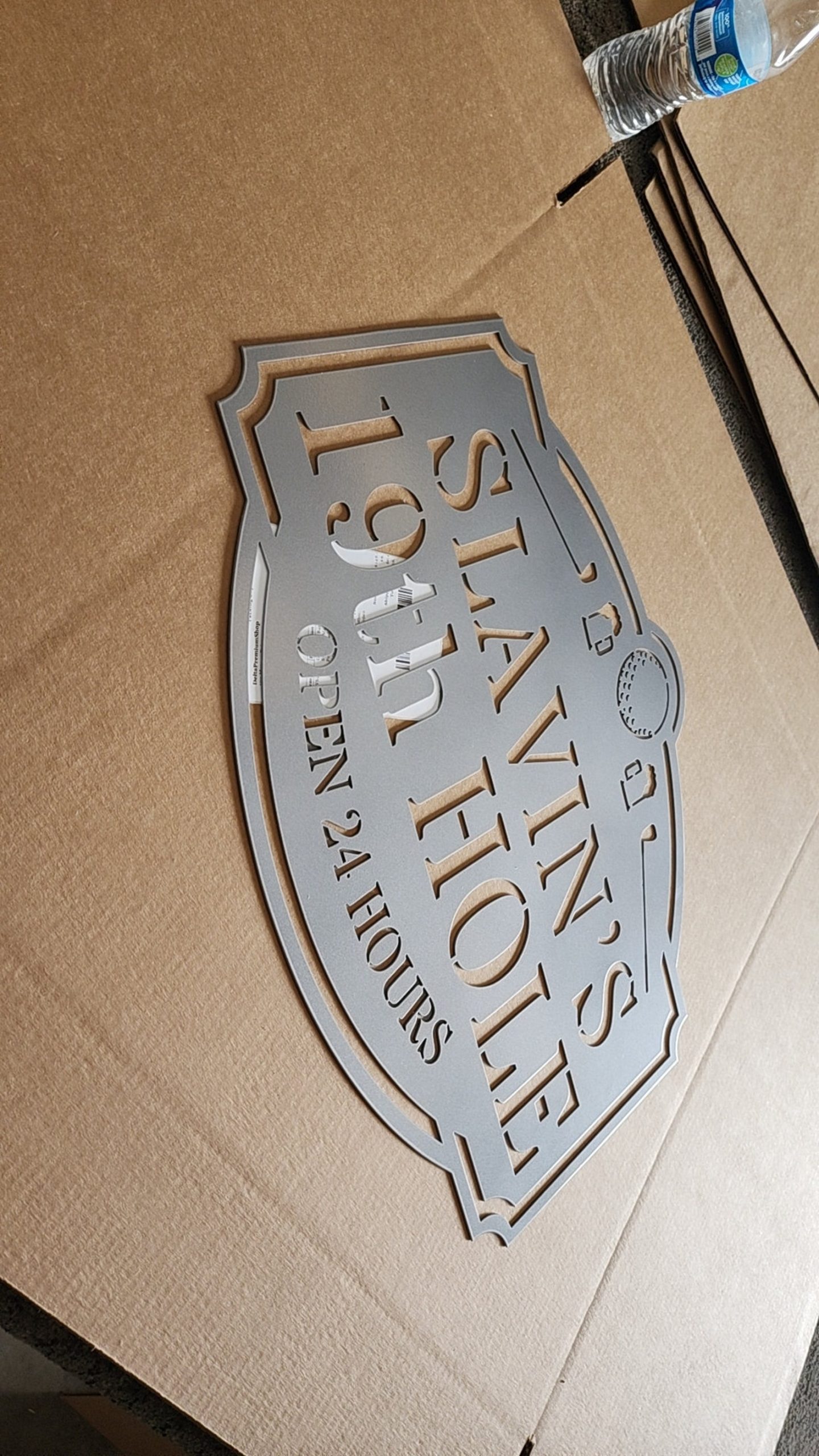 Elevate your home bar with our personalized Golf-themed sign. Crafted with attention to detail, this stylish metal sign can be personalized with your name or message to make it truly unique. Perfect for avid golfers and enthusiasts, this sign adds a touch of sophistication and charm to your home bar, inviting friends and fellow golf lovers to gather and enjoy drinks in a rela and inviting atmosphere. Swing into style with this custom-made masterpiece.