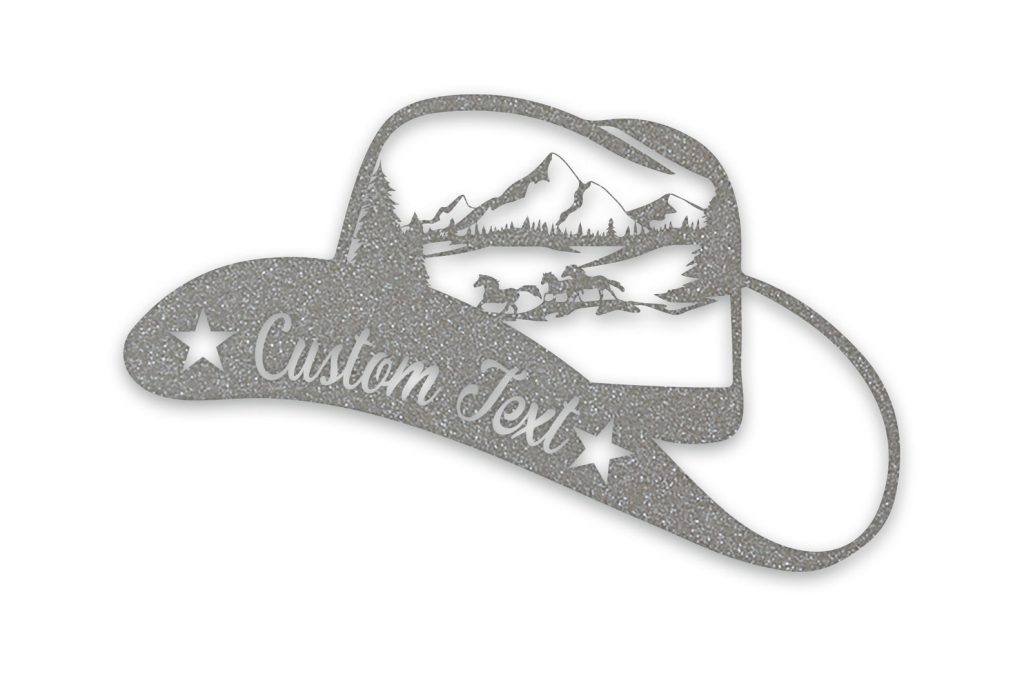 Experience the wild with this Great Outdoor-Cowboy Hat with Horses. With the design of horses roaming free in the wilderness, you9;ll feel like a real cowboy! Relive memories of roaming freely and exploring nature with this personalized decor for your home.