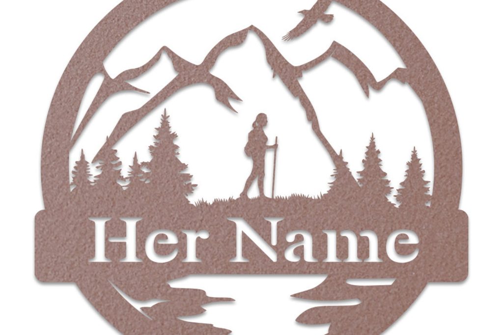 Great Outdoor Hiking Woman Monogram Metal Sign