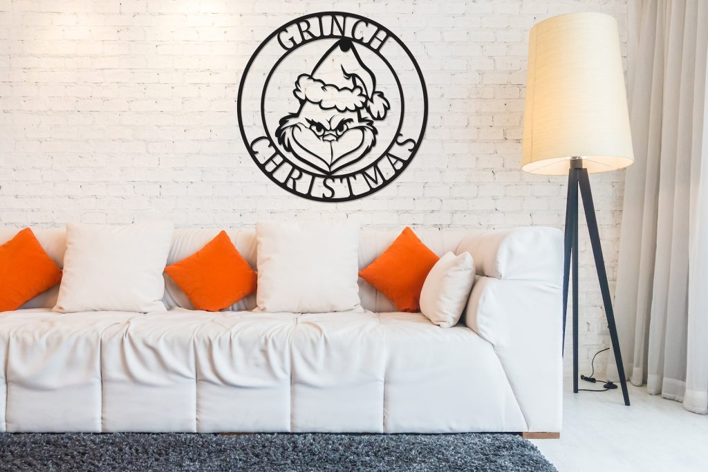 Be the first to review “Grinch with Santa Hat Metal Christmas Sign”