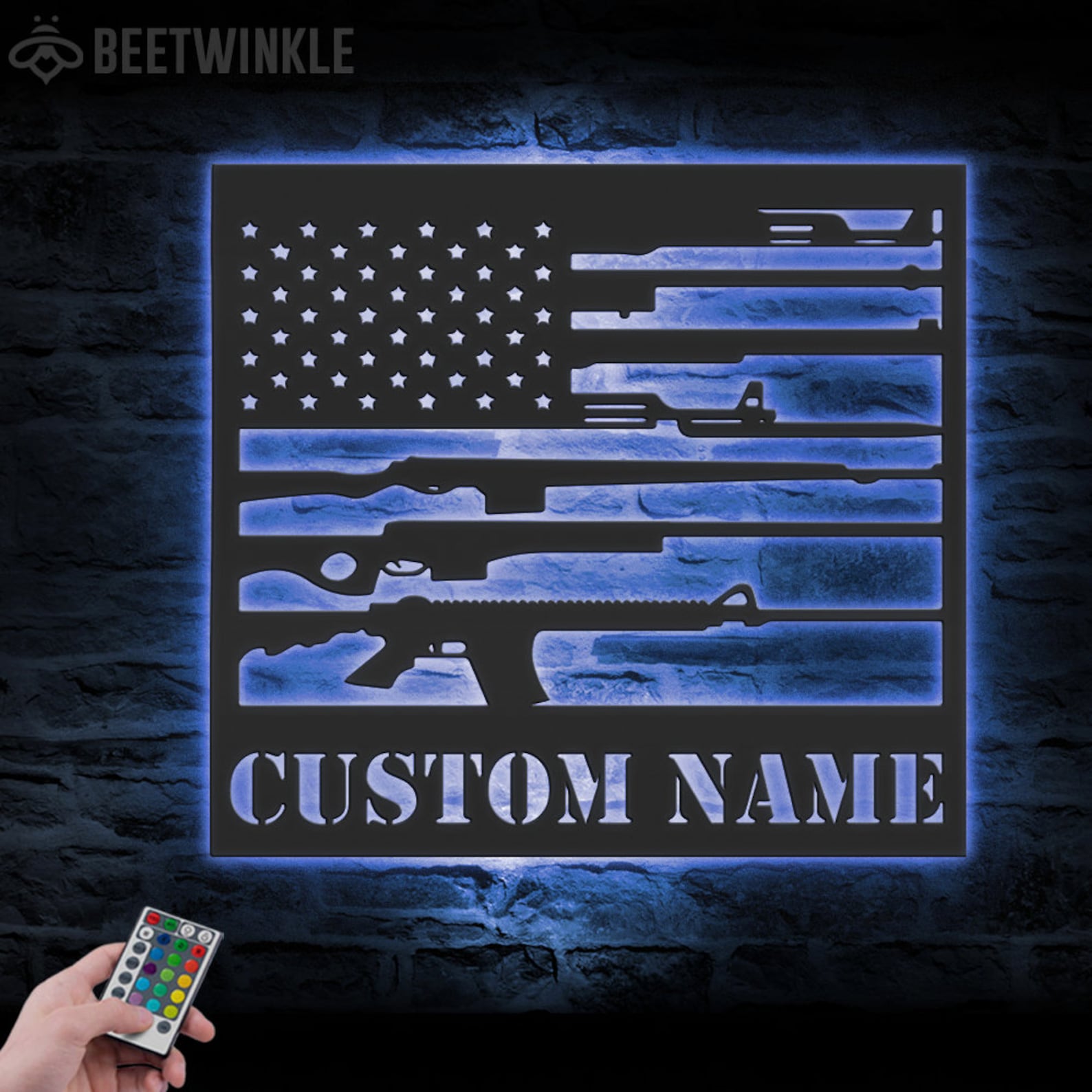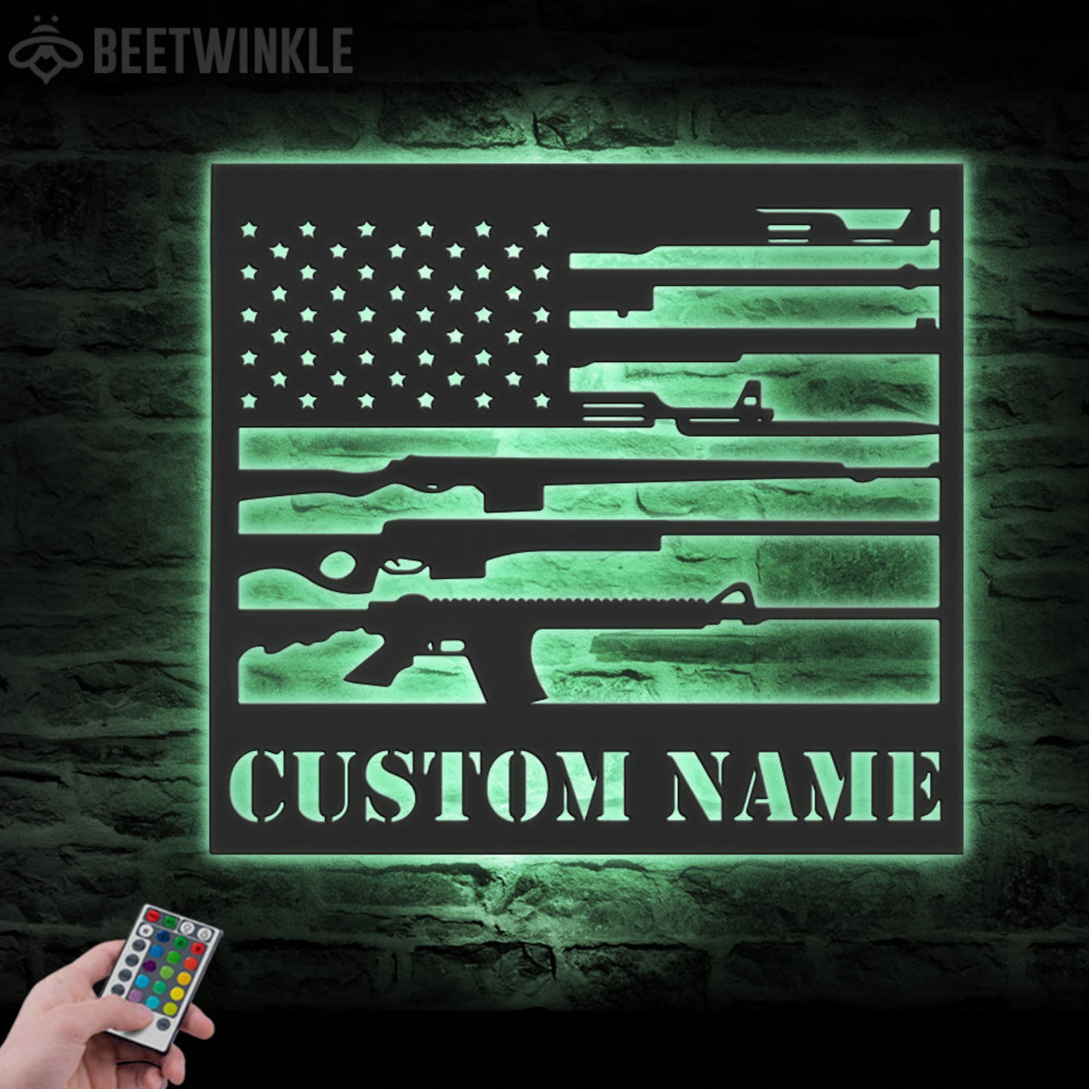 Be the first to review “Gun Flag Art – Personalized Metal LED 2nd Amendment Wall Sign”