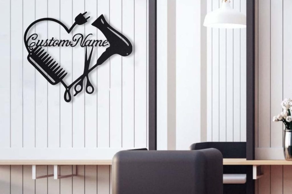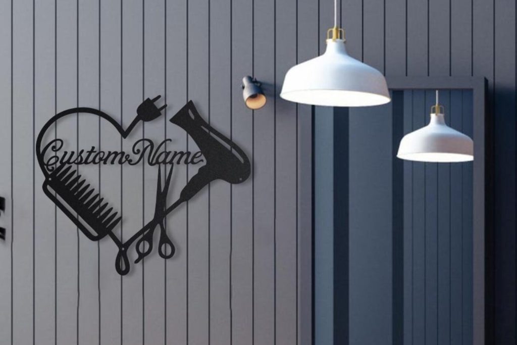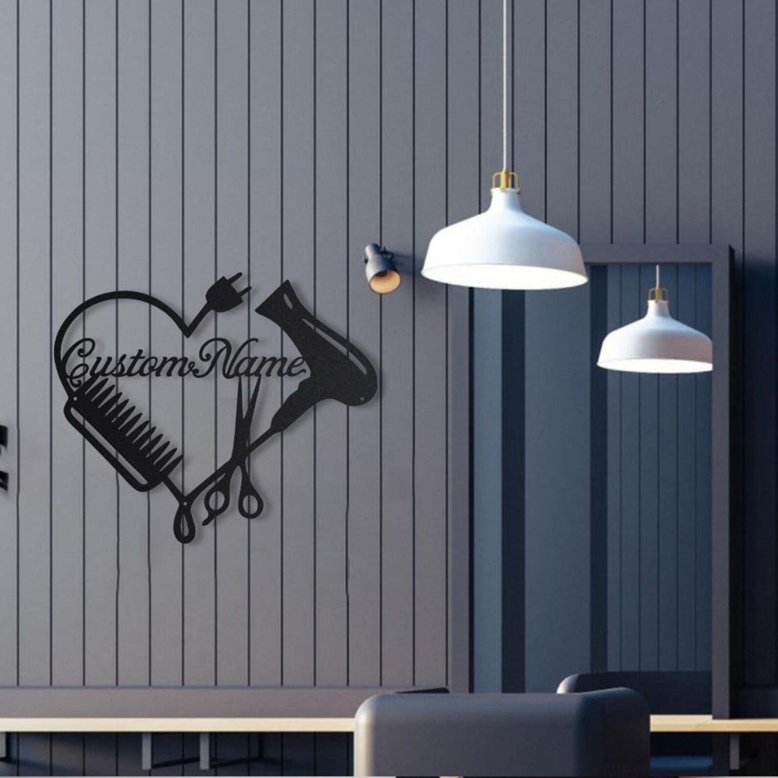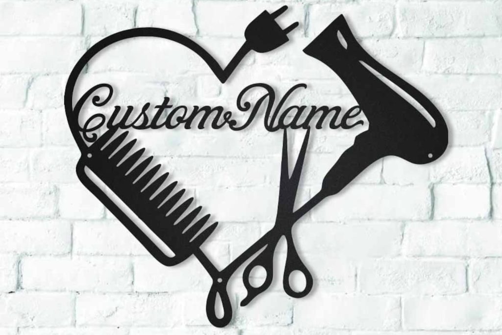 Hair Dresser Sign – Custom Metal Stylist Heart Decor