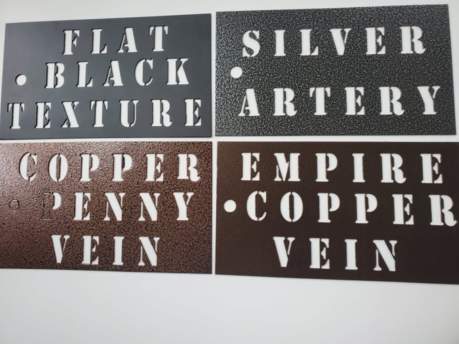 Each item is cut from a 14 gauge steel sheet using a plasma cutter, grinded for a smooth finish, cleaned, powder coated for rust prevention and placed in the oven for color specific temp and time. Item will ship within 5 days of ordering as these are made to order.