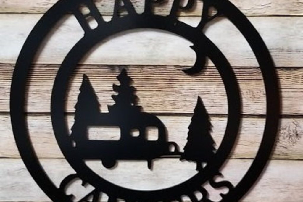 Show off your joy of being one with the road and in the wilderness with this Camper Sign. This rustic sign can be customized with your wording and camper style silhouette.
