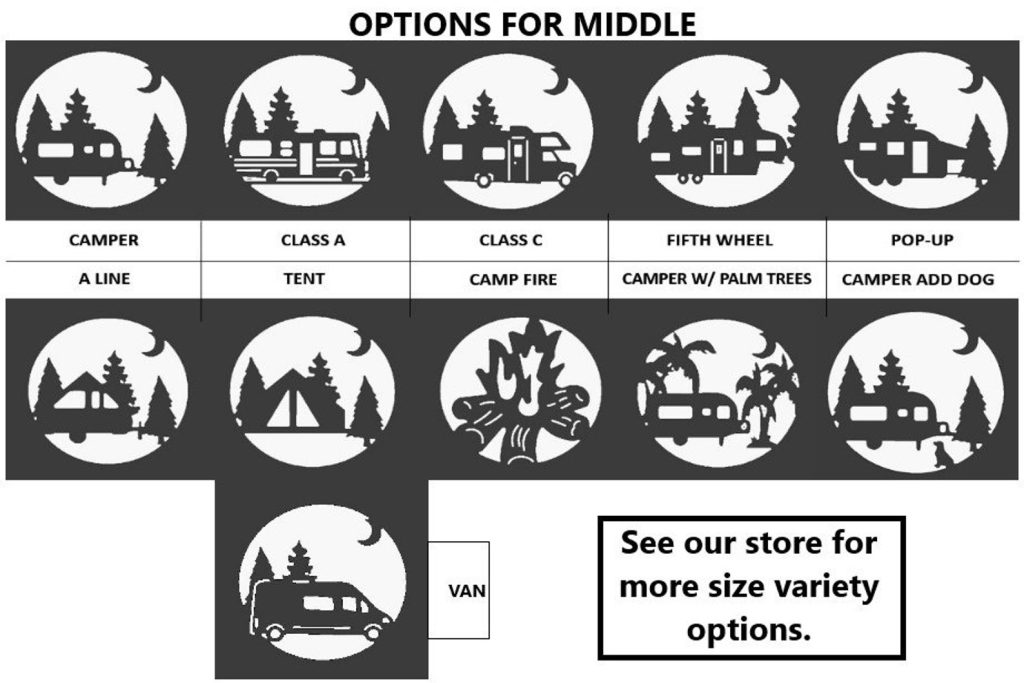 * SIZE – Customize size, camper style, all wording, color, and display option.