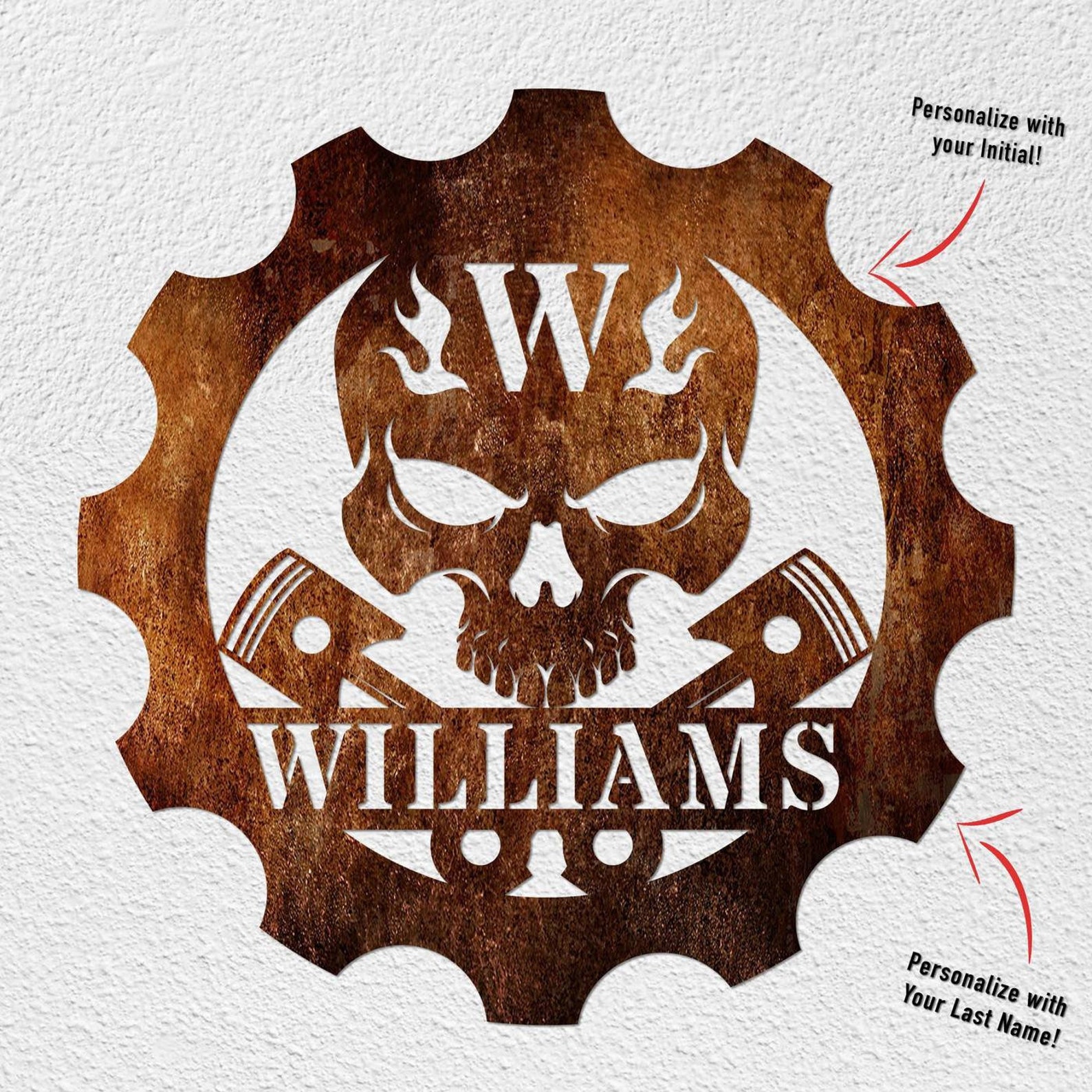 Harley Davidson Biker Metal Wall Art To Be PERSONALIZED – Skull Family Monogram Metal Sign