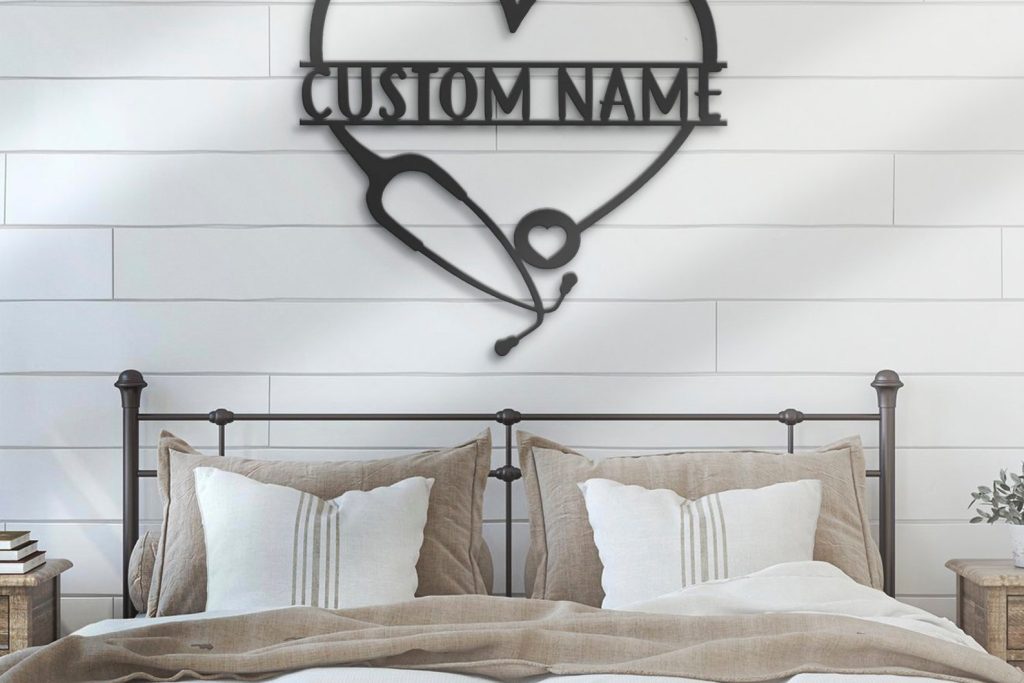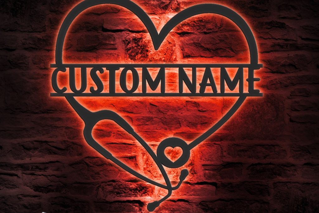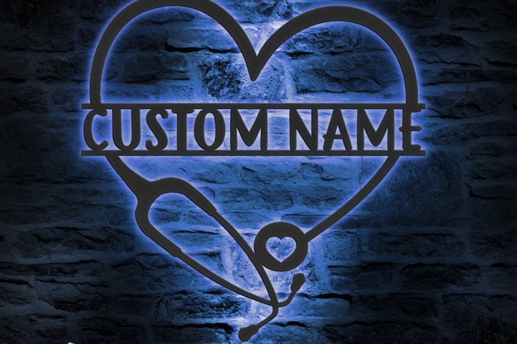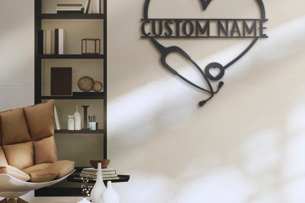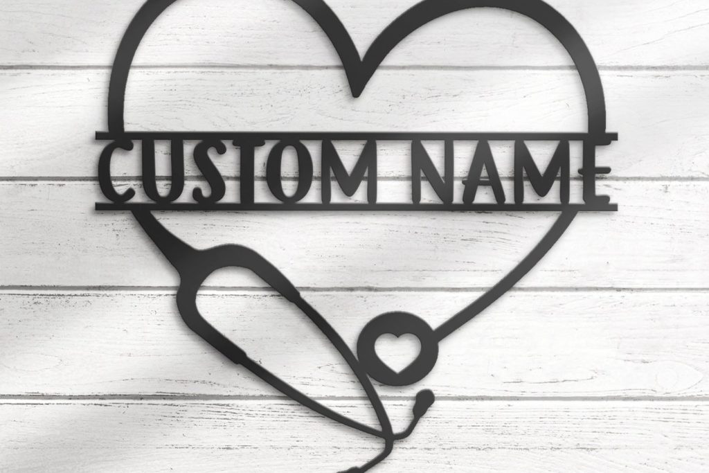 Be the first to review “Heart Stethoscope Sign, Nurse Name Sign, Metal Art”