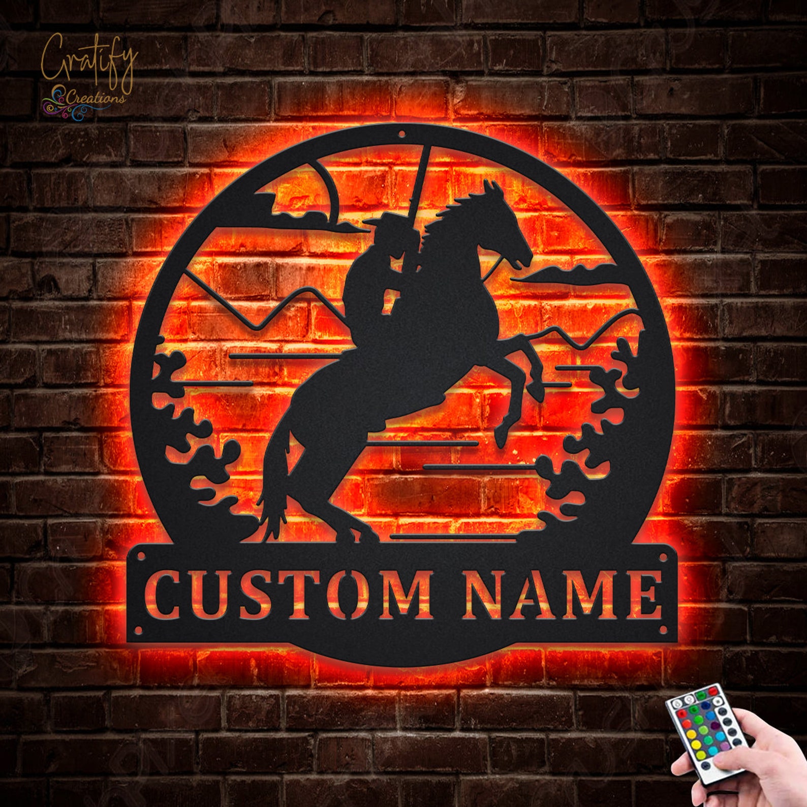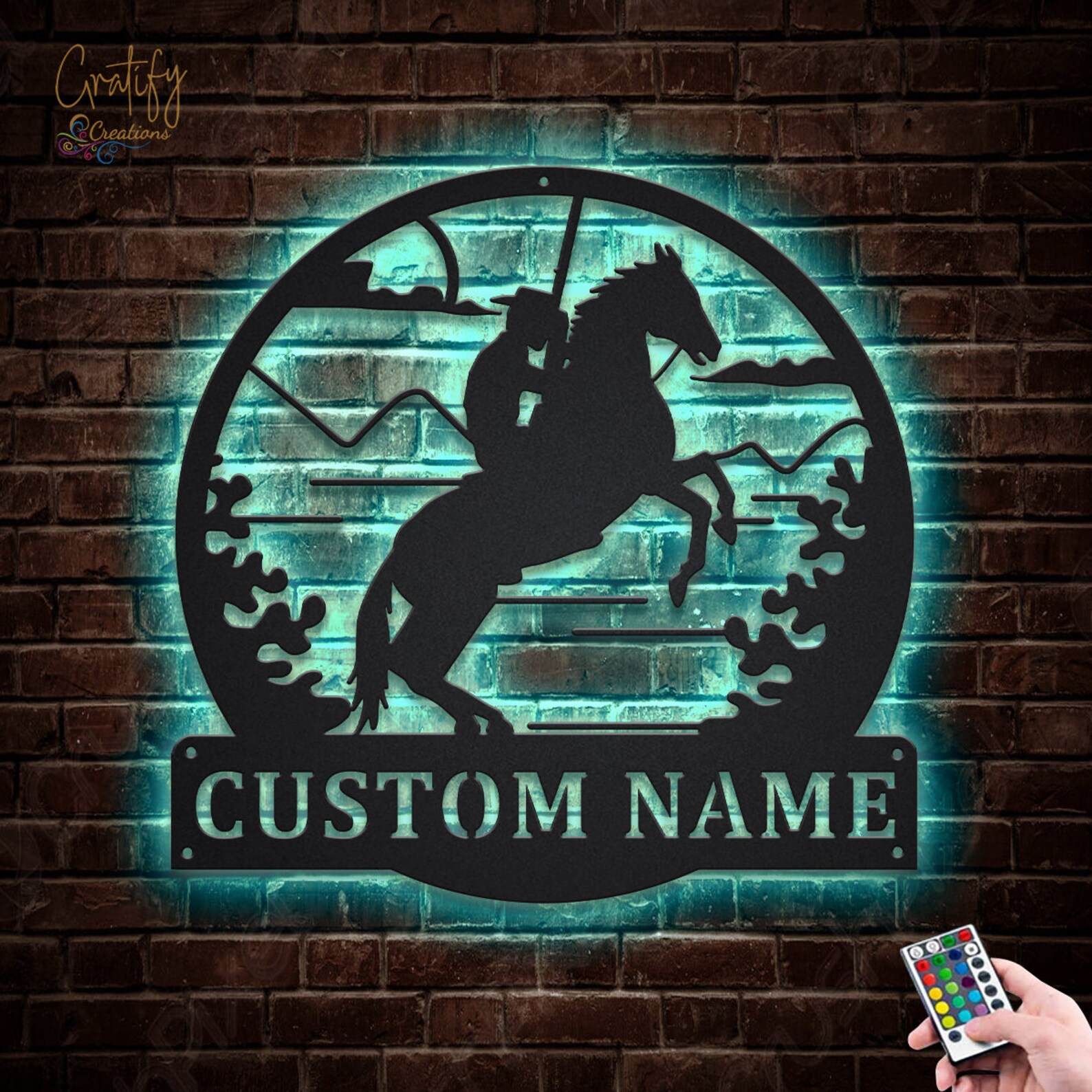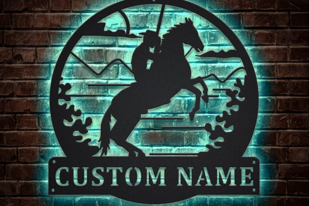 Be the first to review “Horse and Rider Sign, LED Light Decor”