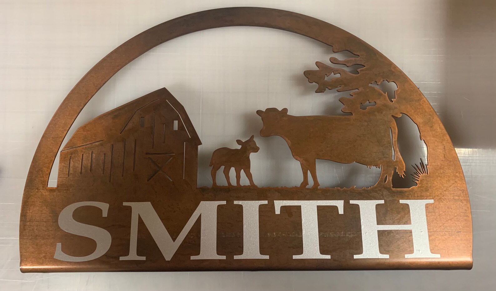 Name is vinyl lettering so can be seen on both sides or optional cut out letters if only one side is needed.