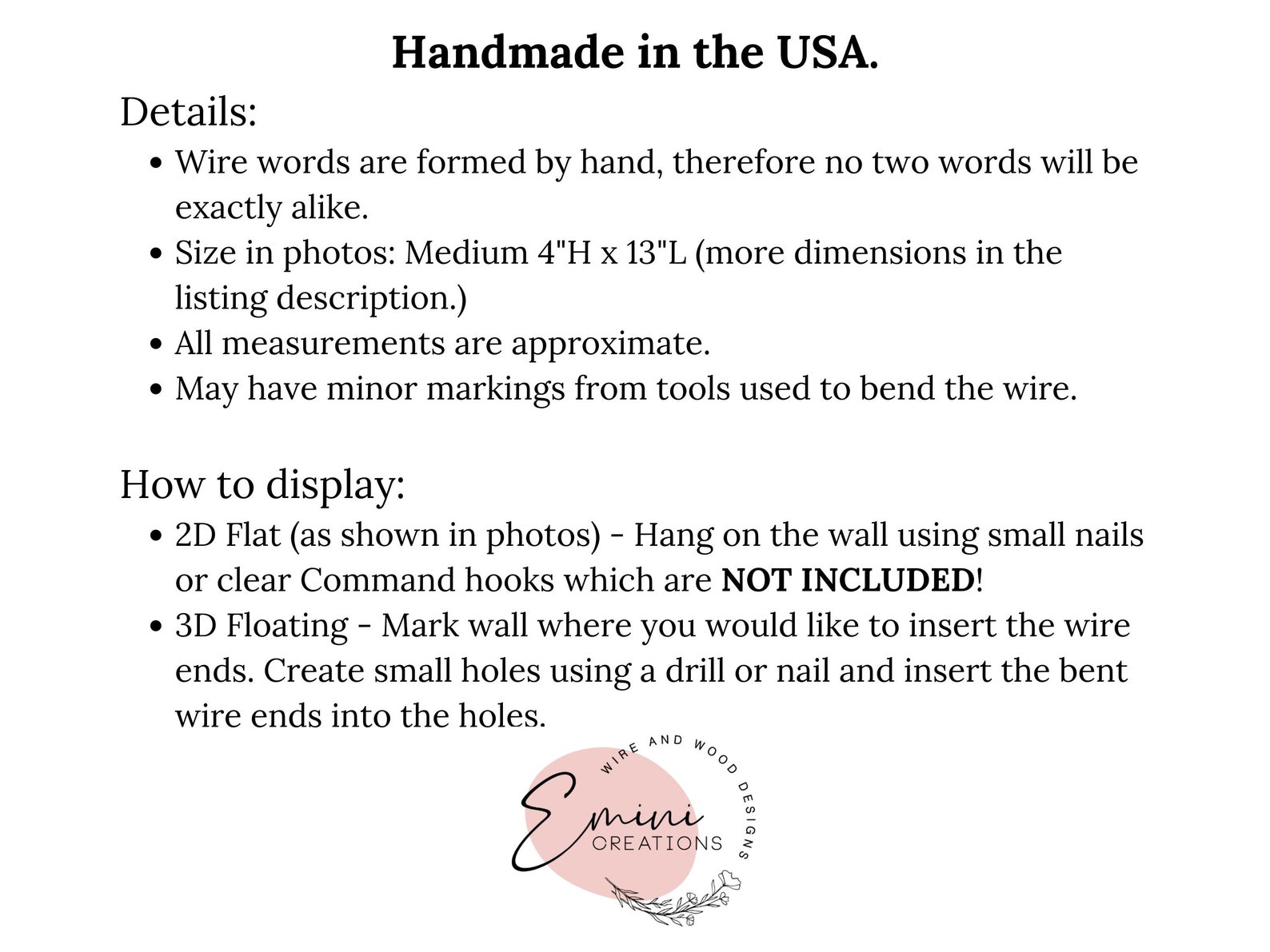 tI form the wire word freehand without the use of a template therefore no two words will be etly alike.