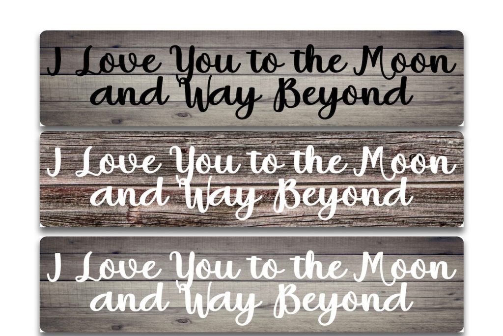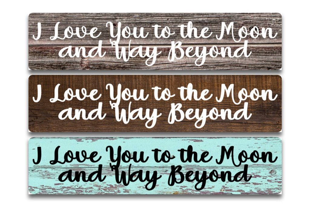 Design:I love you to the moon and way beyond – white Crackle, grey, teal, rusty, blue or barnwood background Metal Sign Farmhouse Wall Decor Modern Metal Sign – (Note not actual wood so no chance of splinters. Thin Lightweight and easy to hang)