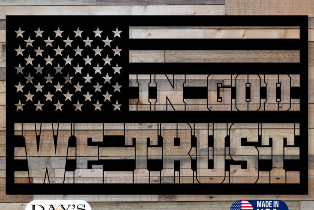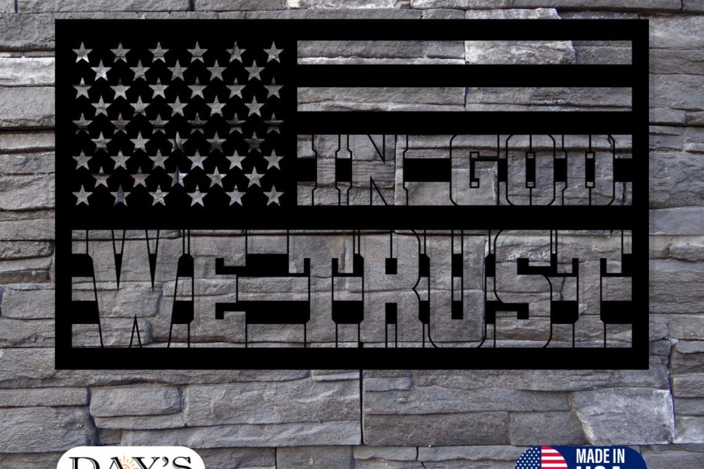 Be the first to review “In God We Trust Metal American Flag Wall Art”