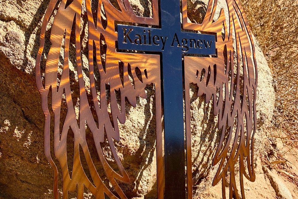 This one of a metal memorial cross customizable to the name of your choice. All signs are powder coated black unless otherwise specified.