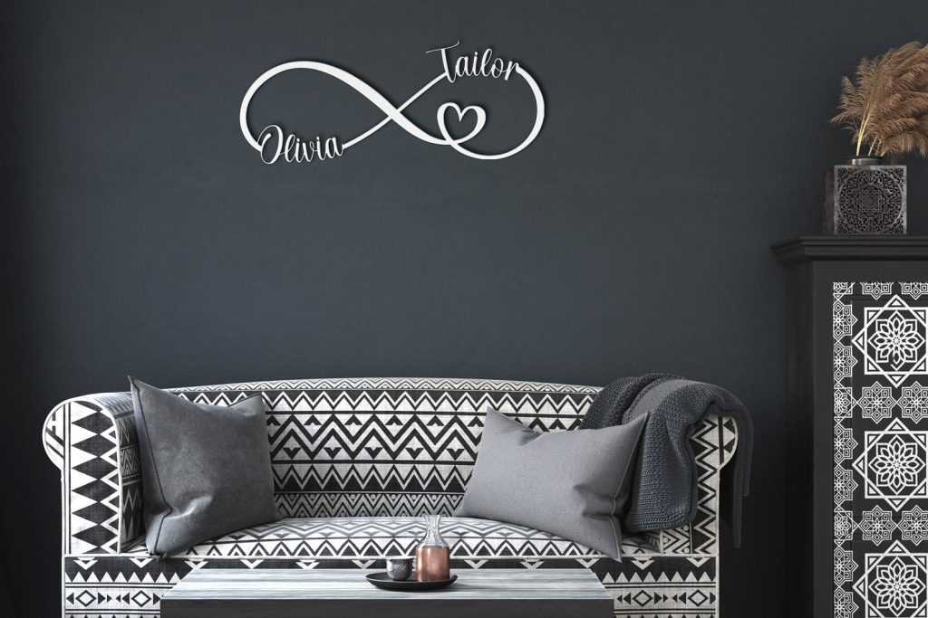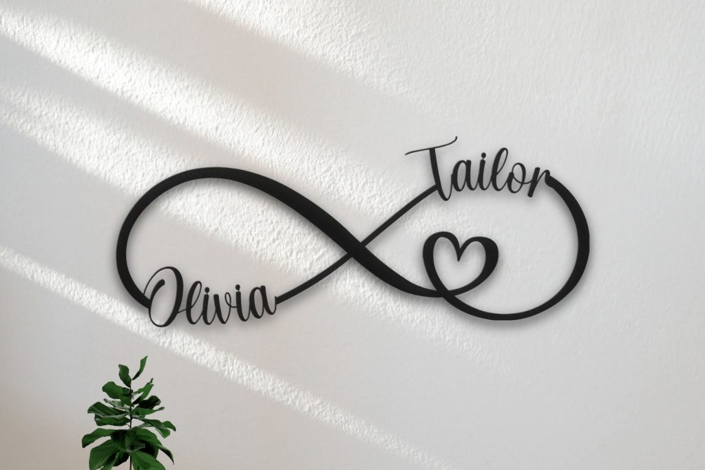 Enhance your home decor with this beautiful custom infinity metal sign. This couple name metal sign is laser cut from a 18 gauge steel, which is powered coated further to make it smooth and durable!