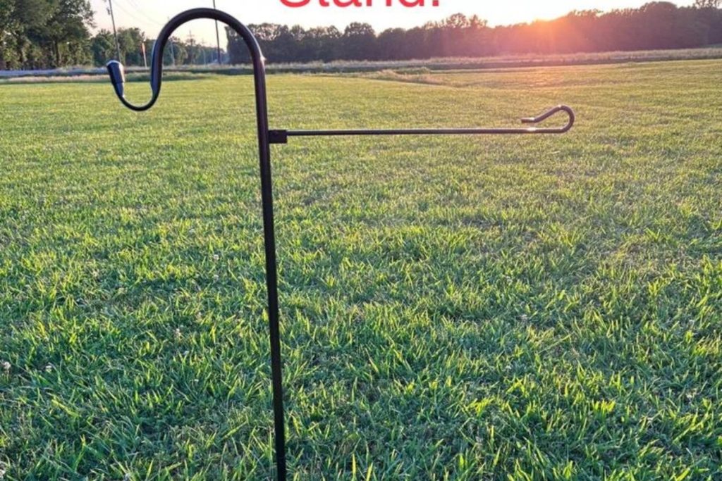 We offer a stand option that includes a premium, heavy-duty garden flag stand. This stand is designed to withstand the outdoor elements and securely display your flag with pride. Whats more, it features a convenient hook on the other side, allowing you to hang additional items like plants, a bird feeder, wind chimes, or anything else you desire. Its a versatile addition that adds functionality and creativity to your garden display. Please keep in mind if you do NOT choose the stand option you will only receive the flag and chains.