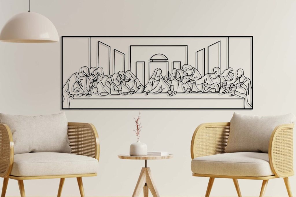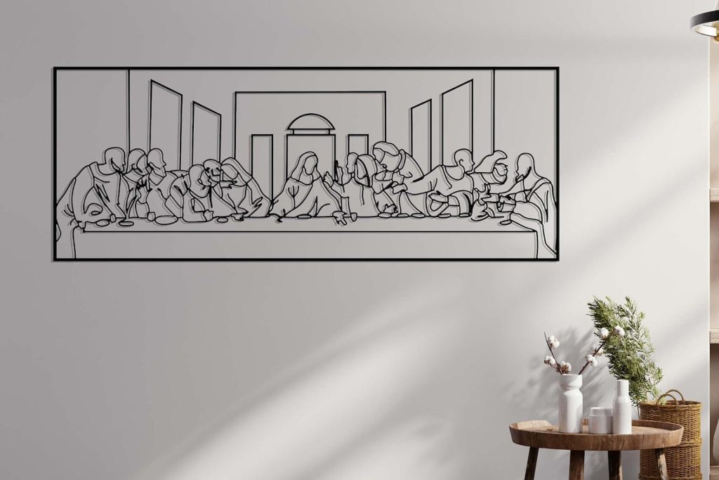 Jesus Last Supper Metal Wall Art by Leonardo Da Vinci Artwork, Religious Decor, Christian Metal Gift, Jesus Line Art, Christian Home Decor
