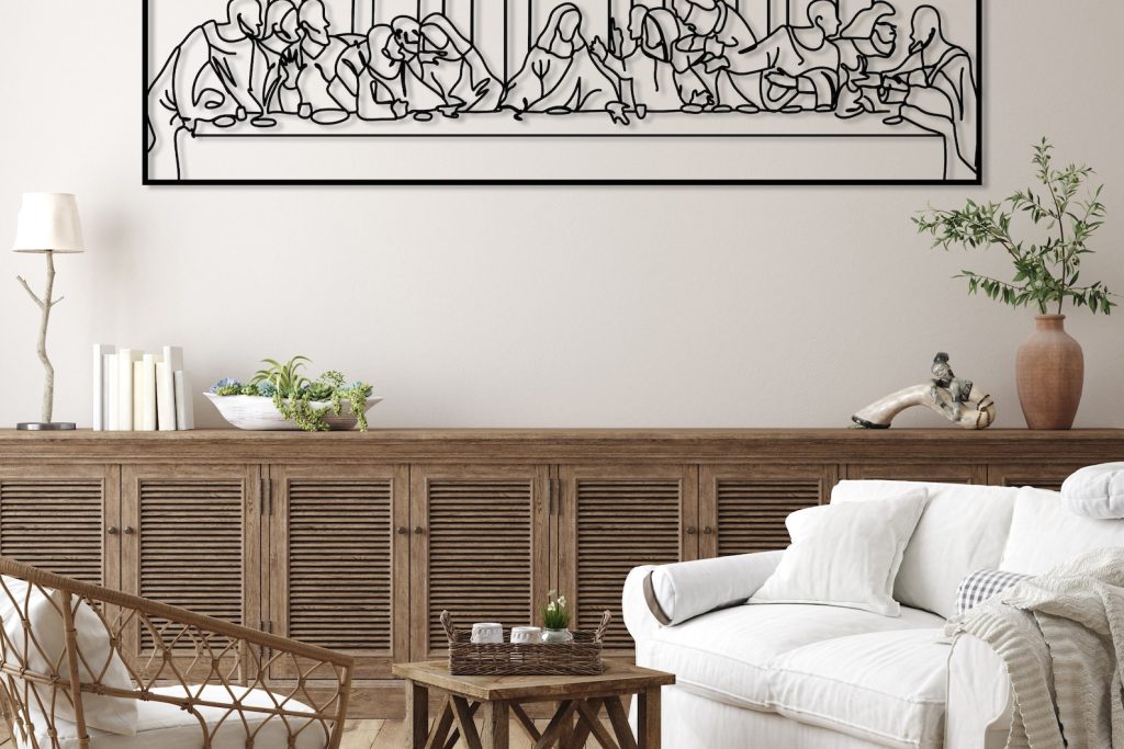 Jesus Last Supper Metal Wall Art by Leonardo Da Vinci Artwork, Religious Decor, Christian Metal Gift, Jesus Line Art, Christian Home Decor